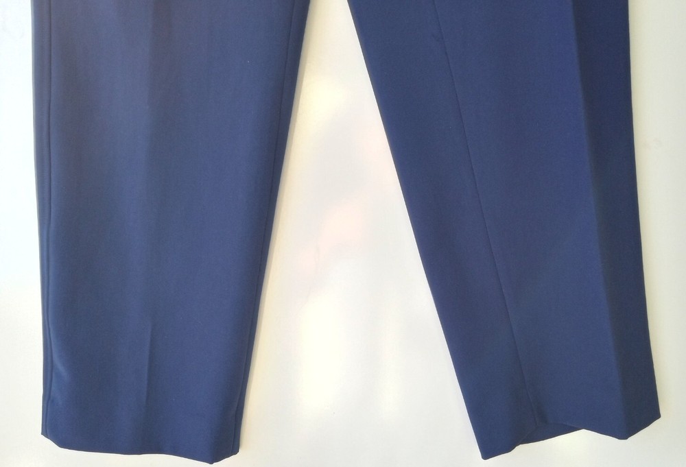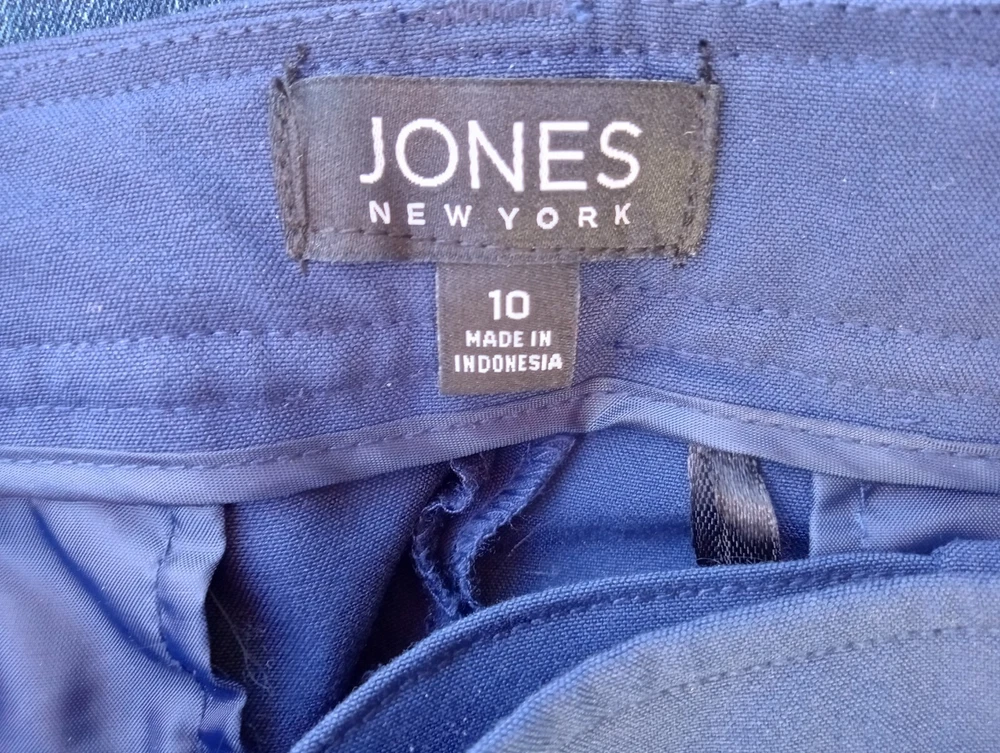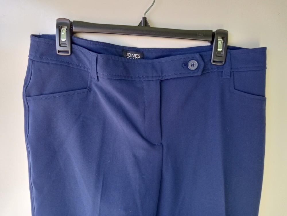 Waist Size: 33.5 in Rise: Mid (8.5-10.5 in) Style: Dress Pants Closure: Button, Zip Color: Blue Department: Women Material: Polyester, Viscose, Elastane Inseam: 30 in Size: 10 Leg Style: Straight Pattern: Solid Type: Pants Brand: Jones New York Fit: Regular Size Type: Regular