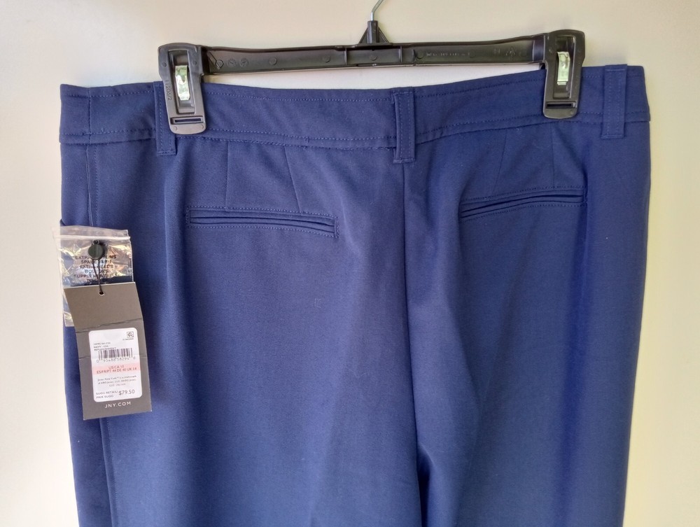 JONES NEW YORK Navy Blue Women's Dress Pants 10 New 77% Polyester, 19% Viscose and 4% Elastane Slight stretch No pockets Zipper, button closure Belt Loops Measures Flat Approximately: 39 1/2" length 30" inseam 16 3/4" waist 20" hip 10 1/2" rise 7 1/2" leg opening New with Tags Fast Shipping