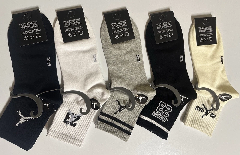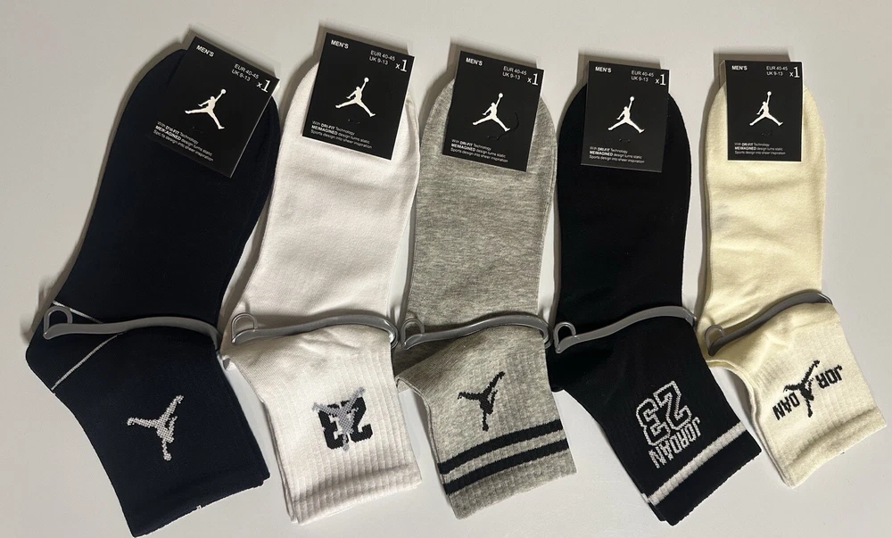 Elevate your sock game with these Jordan ankle socks. This pack includes five pairs of colorful, striped socks featuring the iconic Jordan logo. Perfect for casual occasions, these mid-calf socks are made for men in size 9-13. The lightweight ankle socks are suitable for all seasons and activities such as gym training, track and field, riding, tennis, walking, cycling, soccer, lacrosse, basketball, and football. These socks are not handmade and come from China. Add these classic and stylish socks to your wardrobe today.