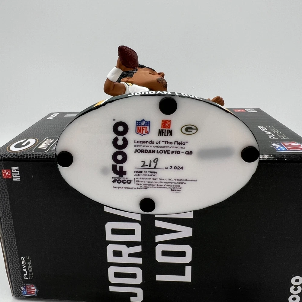 Player: JORDAN LOVE League: National Football League (NFL) Color: White Sport: Football Country/Region of Manufacture: Jersey Team: Green Bay Packers Product: Bobblehead Officially Licensed: Yes