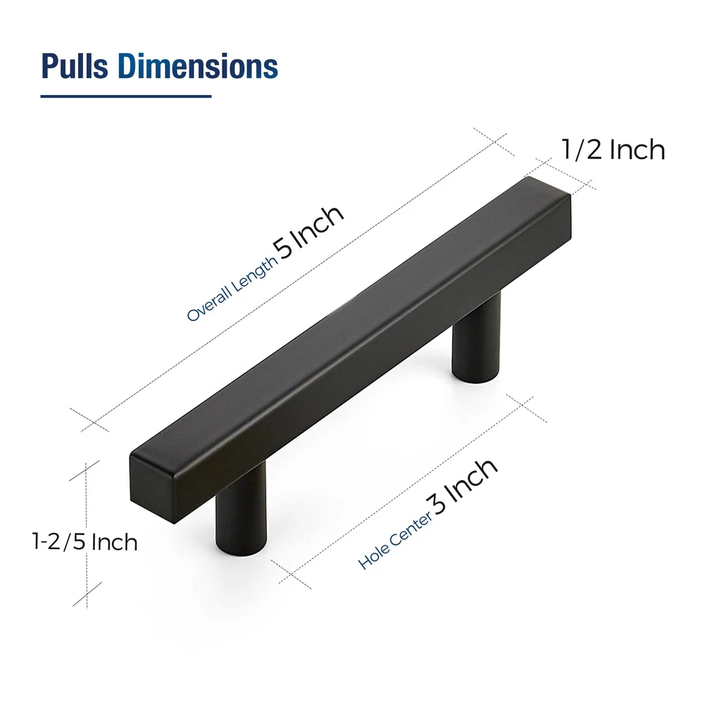 Measurement: Hole Center: 3 inch(76mm), Total Length:5 inch(127mm), Width: 1/2 inch(12mm), Height:1-2/5 inch(35mm) Package Include: There are 30 pack handles in the package . And each handle comes with 2 different size mounting screws(2*1" screws and 2*1.75" screws). The handles are packed individually to protect the handles from scratching during ransportation. Long-lasting: The matte black handles are made of stainless steel material with round foot square shape . The sturdy and robust practicality allows these handles have the long-lasting performance . Widely Application:Our matte black handles can be adapted to any style of decoration, can be used for any furniture such as cabinets, doors, drawers, dressers and so on in kitchen, bathroom, living room, bedroom . 365 Days of Risk-Free Satisfaction: We offer 365 days risk-free after-sales service so that you can order with confidence. JOY DECOR brings you a truly joyful decoration experience.