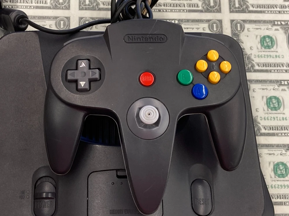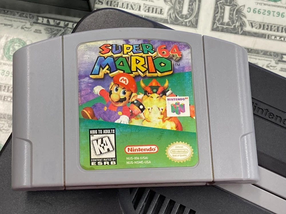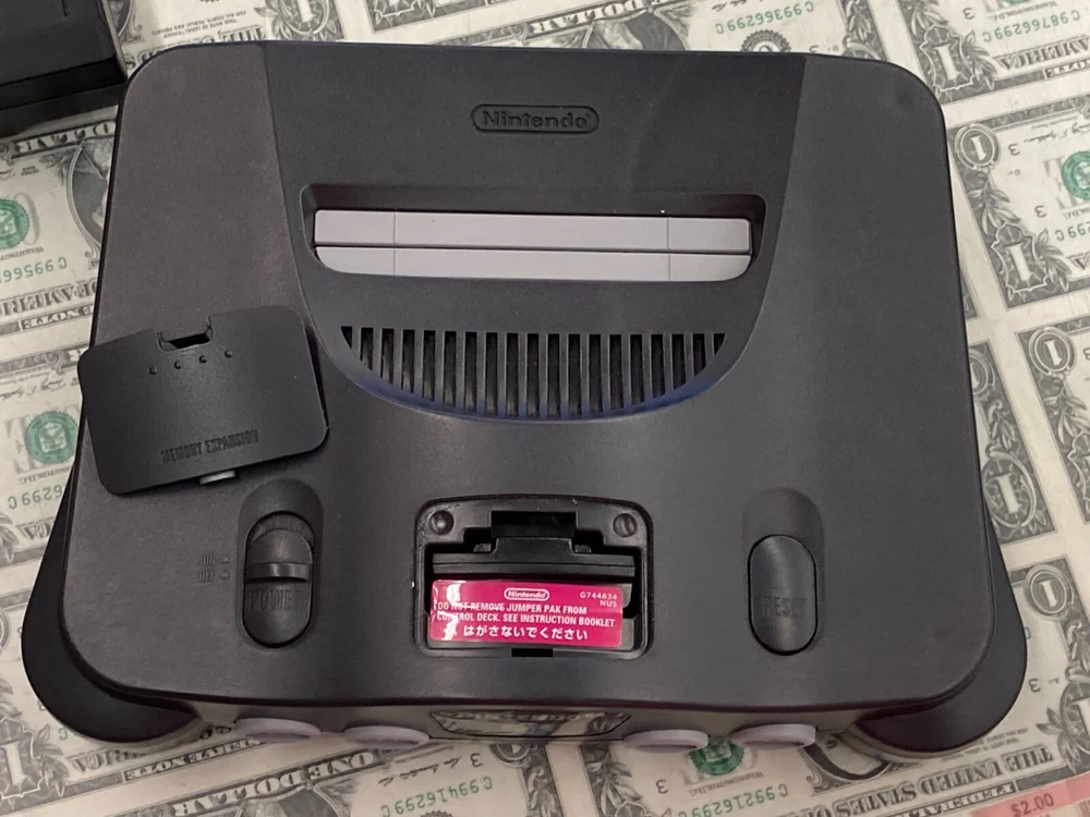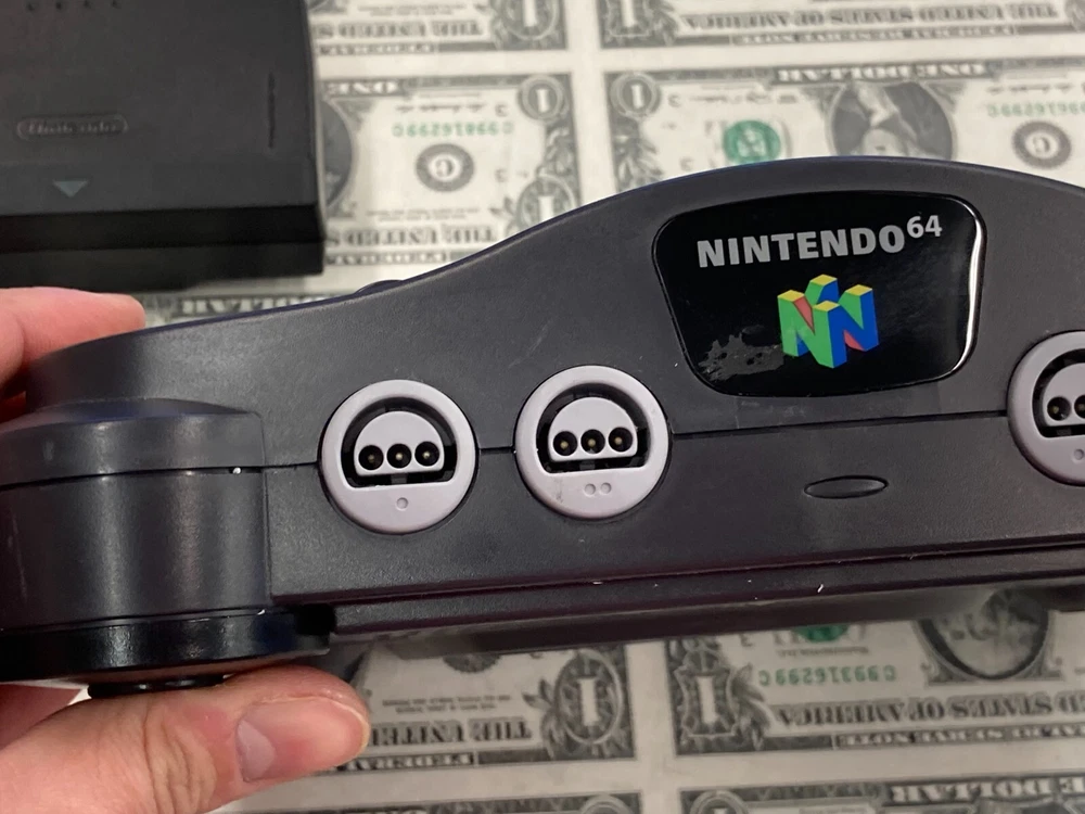 JPN* Nintendo 64 N64 Console Bundle Complete w/ Controller + Super Mario 64 Cart includes all shown AV is not Nintendo tested working - see pics system is Japanese version but plays this cart which is US some dents on console behind cart port - see pics **US Shipping Only** w/ tracking number Check out our Store