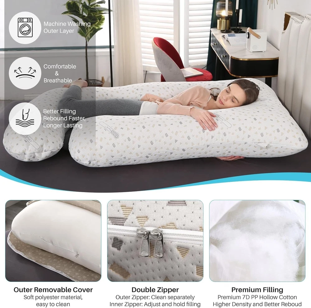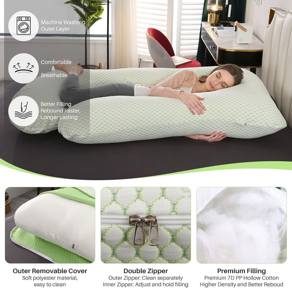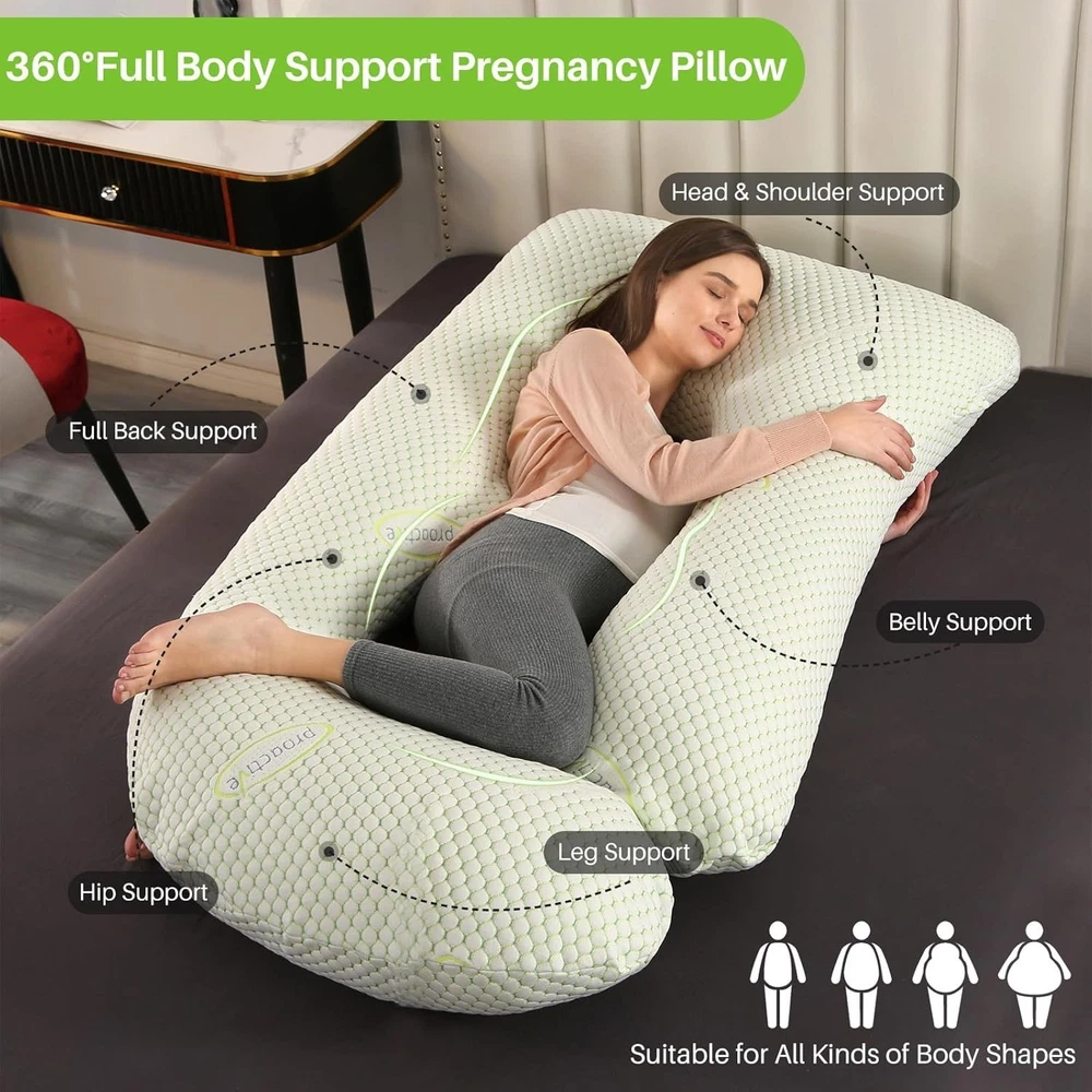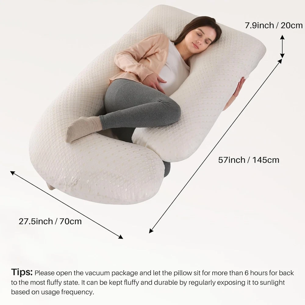 Description Description: 【Full Body Pillow for Pregnant Women】-The pregnancy pillow is 27"x27.5"x8". We have designed a larger size and fuller filling to perfectly support your whole body. gives total pregnant support to your head, back, hips and legs, maternity pillows for sleeping full body. 【Multipurpose Maternity Pillow】pregnancy pillow not only can be served as body pillow for sleeping,but also a maternity body pillow for reading,feeding or relaxing, pregnancy pillows for sleeping cooling is also a good side sleeper pillow. 【Ergonomic Body Pillow 】- We have combined the design concept of the old U and C pregnancy pillow, and we have not only increased the size, And add more premium filling,pregnancy pillows cooling to give you more comfortable support in more areas.Helps relieve discomfort associated with pregnancy, sciatica, fibromyalgia, gastric reflux, and more. 【Easy to Care】pregnancy pillow features a detachable cover for easy cleaning. Simply remove the cover for machine washing to keep it fresh and hygienic. It is machine washable in cold water on a gentle cycle with mild detergent; avoid bleach and ironing. 【Versatile Pregnancy Pillow】 The body pillow pregnancy is not only for pregnant women but for anyone needing more support, If you need a side sleeper pillow or more support for your head, neck, legs, and back while you sleep, you should have this one.Start with the maternity pillow, which perfectly supports all parts of your body for a better night's sleep. Specifications: Type: Pregnancy Pillow Shape: J Shape Material: Polyester Size: 145cm*70cm/27.5 * 57inch Fill material:7D PP Hollow Cotton Package List: 1 x J Shaped Full Body Maternity Pillow Tips: The body pillow is compressed in vacuum package for convenient shipping Please pat the pillow and let it expand for at least 48 hours to make it fluffy enough before using. Shipping: Free Shipping within the 48 States. We ship within the United States only. The term EXCLUDES the states of Alaska, Hawaii and all off-shore U.S. territories and possessions such as Puerto Rico, Guam and Virgin Islands. We do not ship to APO and FPO. Delivery Time: 3-8 business days (Varies by Destination) If you have any questions or problems with delivery, please contact us. Return & Warranty 30 DAY MONEY BACK SATISFACTION GUARANTEE | 360 DAY WARRANTY COVERS MANUFACTORY DEFECTS Returns are permitted and must be initiated by the buyer within 30 days from delivery date. In order to return an item, you must contact to request an Return Merchandise Authorization Number (RMA). No return package will be accepted without a valid RMA number. All products are covered by our warranty against defects. If an item proves to be defective, please contact to have the product repaired or replaced. Contact US Please send all correspondence through the eBay messaging system. Messages will be replied during business hours: 9AM to 6PM Pacific Time. Monday to Friday only (excluding Holidays). After hours messages will be replied on the next business day.