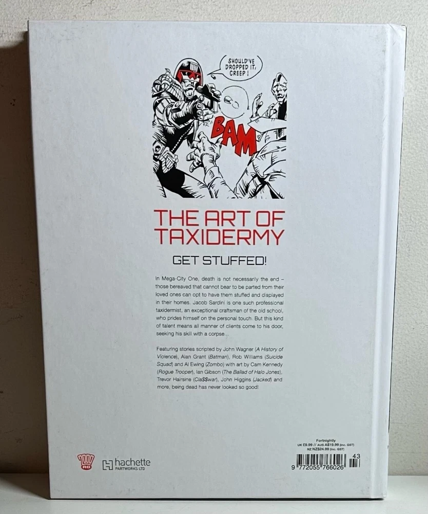 This is a hardcover graphic novel book titled "Judge Dredd Mega Collection: #72 The Art of Taxidermy". It features the iconic character Judge Dredd in a modern age era (1992-now) US Comics tradition. The book is part of a series titled "The Mega Collection" and is published by Hachette Partworks. The book is in colour and does not include a signature. It was published in 2016 and is a great addition to any comic books and memorabilia collection. This item is perfect for fans of graphic novels and Judge Dredd in particular.