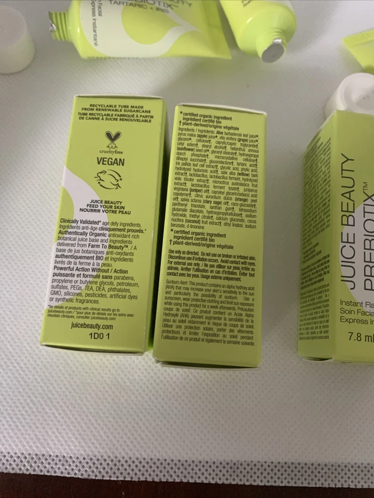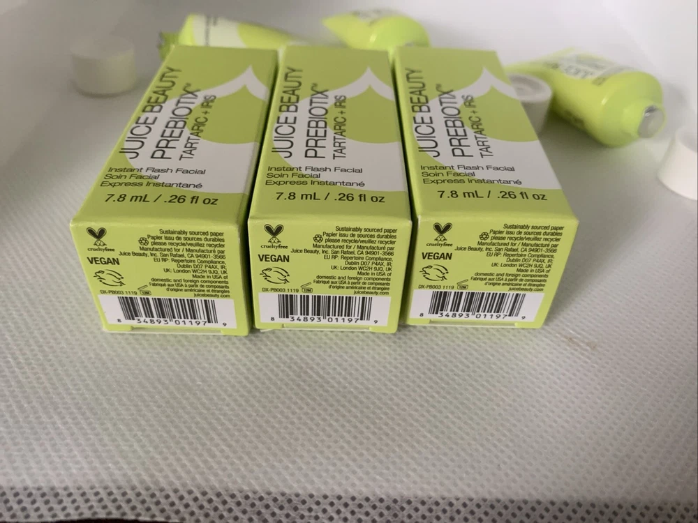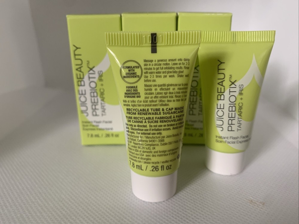 JUICE BEAUTY Prebiotix Instant Flash Facial 3x Travel Size Tartaric Iris 0.26oz Sealed