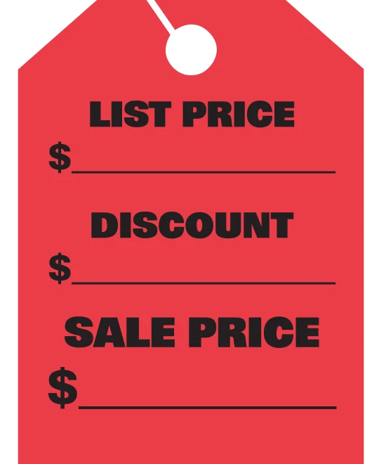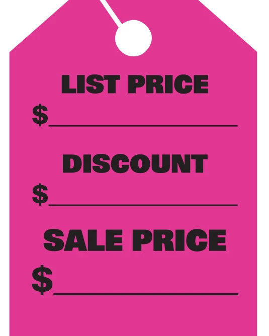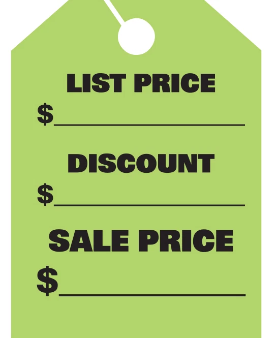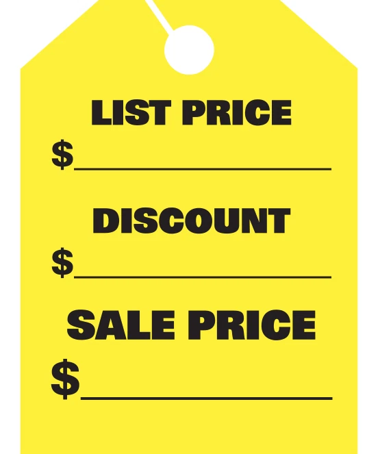 JUMBO CAR DEALER REAR VIEW MIRROR HANG TAGS DISCOUNT SALE PRICING SIGN