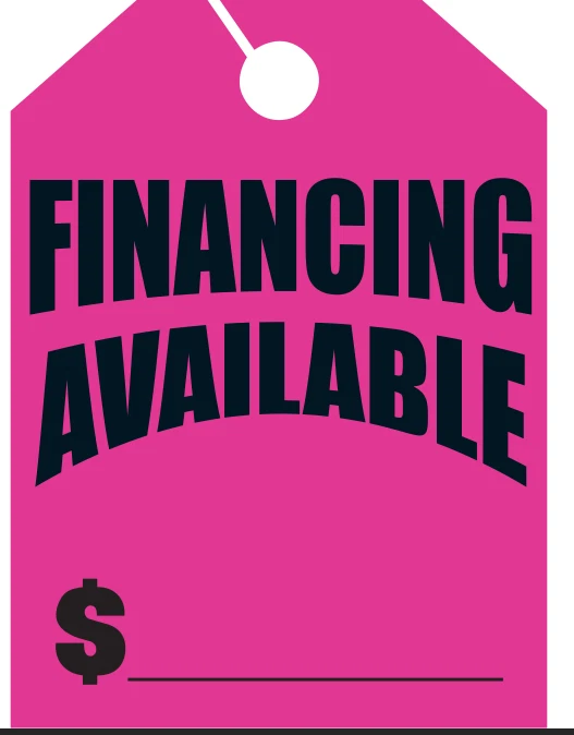 JUMBO CAR DEALER REAR VIEW MIRROR HANG TAGS FINANCING SALE PRICING SIGN