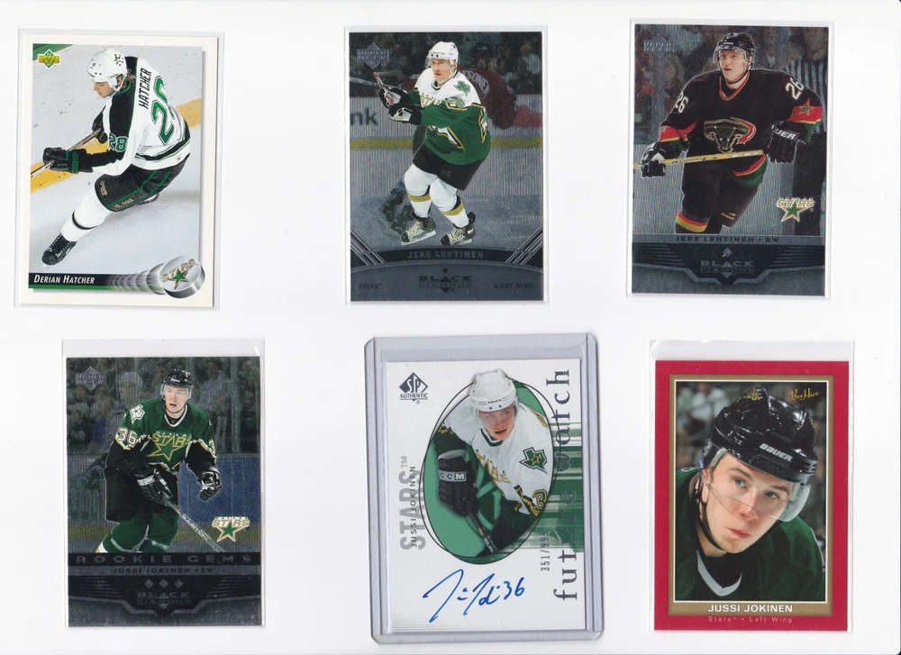 WELCOME TO THE McCRAE FAMILY CARD STORE… OR HOPEFULLY WELCOME BACK… PLEASE BE SURE TO CHECK OUT ALL OF MY LISTINGS; 100’S OF NEW LISTINGS ARE GOING UP EVERY WEEK!!!!! FOLLOW ME ON TWITTER AT CARD_GARAGE …FOR GREAT STACK SALES & GIVE AWAYS!!! PLEASE NOTE THAT YOU ARE ONLY PURCHASING THE CARD(s) LISTED BELOW… ALL OTHER PICTURED CARDS MAY BE PURCHSED IN MY OTHER LISTINGS TODAY YOU ARE LOOKING AT… FORMER DALLAS STARS SUPERSTAR... JUSSI JOKINEN 2005-06 UPPER DECK BLACK DIAMOND HOCKEY TRIPLE DIAMOND ROOKIE CARD #15 9 A MUST HAVE ADDITION TO THE COLLECTION OF EVERY TRUE STARS HOCKEY FAN!! BUY MORE OF MY LISTINGS IN THE SAME CHECK OUT & SAVE!! BUY 2 ITEMS & SAVE 10% ON EACH BUY 3 ITEMS & SAVE 15% ON EACH BUY 4+ ITEMS & SAVE 20% ON EACH PLEASE WAIT FOR A COMBINED PURCHASES INVOICE BEFORE YOU PAY! TRACKABLE PLAIN WHITE ENVELOPE SHIPPING & HANDLING IS INCLUDED IN YOUR BUY IT NOW PRICE!!!!! MY SELLING PRACTICES: I LOVE TO HAGGLE!!!!! I MISS THE CARD SHOW DAYS OF TALKING WITH MY CUSTOMERS AND DISCUSSING CARDS, VALUES & PRICES… PLEASE DO NOT HESITATE TO SEND ME AN OFFER ON ANY OF MY BUY IT NOW LISTINGS!!! IF YOU LOVE THE CARD & THE PRICE…BUY IT NOW…IF YOU LOVE THE CARD BUT NOT THE PRICE…SEND ME AN OFFER; THE WORST THING YOU’LL HEAR IS NO THANK YOU…AND MORE THAN HALF OF THE OFFERS I’VE RECEIVED HAVE HEARD…CONGRATUALTIONS IT’S YOURS!!!!! MY SHIPPING & HANDLING PRACTICES: I SHIP MONDAY THROUGH FRIDAY @ 4PM & SATURDAY @ 12PM. ALL OF MY BUY IT NOW SALES ARE SECURELY SHIPPED IN A SOFT SLEEVE, TOP LOAD & TEAM BAG AND SENT IN A BUBBLE OR PADDED ENVELOPE; UNLESS NOTED AS A WHITE ENVELOPE LISTING…SEE BELOW WHITE ENVELOPE SHIPPING DAYS: THROUGHOUT THE WEEK I WILL LIST BUY IT NOW OPTIONS OF AWESOME LOWER PRICED CARDS THAT WILL BE SECURED IN A SOFT SLEEVE & TOP LOAD WITH PAINTERS TAPE & THEN SHIPPED IN A PLAIN WHITE ENVELOPE. ALL SHIPPING AND HANDLING CHARGES WILL BE INCLUDED IN THE BUY IT NOW PRICE! PLEASE REVIEW ALL PICTURES AND ASK ANY QUESTIONS BEFORE PURCHASING, I DO NOT ACCEPT RETURNS FOR BUYERS REMORSE AND ALL CARDS ARE CONSIDERED IN SPECTACULAR CONDITION; IF NOT BLEMISHES WILL BE NOTED IN THE LISTING!! ALL LISTINGS FROM THE 70’S AND 80’S WILL HAVE MULTIPLE PICTURES TO GIVE YOU THE BEST UNDERSTANDING OF THE CARD’S CONDITION… I WANT YOU TO BE AWARE OF WHAT YOU’RE GETTING BUT EVEN MORE IMPORTANTLY…I WANT YOU TO BE HAPPY AND COMEBACK AGAIN!!!!! I HAVE VARIOUS SINGLES FROM SETS FROM THE LATE 70’S THROUGH TODAY; IN BASEBALL, FOOTBALL, BASKETBALL & HOCKEY, IF YOU ARE A SET COLLECTOR OR SUBSET COLLECTOR PLEASE LET ME KNOW WHAT YOU ARE LOOKING FOR AND I WILL LET YOU KNOW WHAT I HAVE!!! I APPRECIATE YOU TAKING THE TIME TO LOOK OVER MY LISTINGS AND HOPE TO BE “YOUR CARD GUY” FOR YEARS TO COME!!!!! BILL McCRAE THE COLLECTOR’S BEST FRIEND