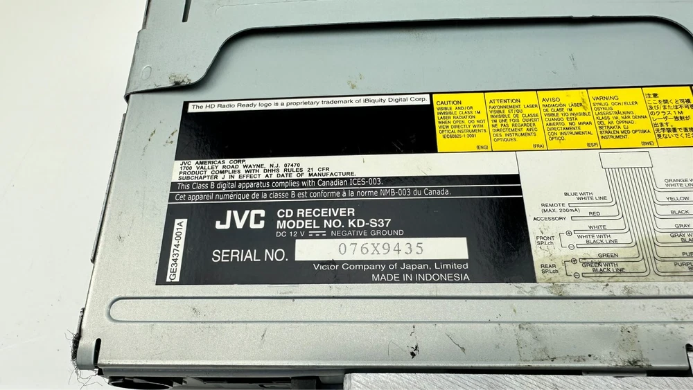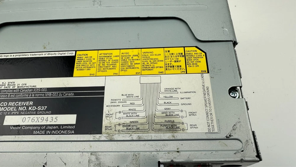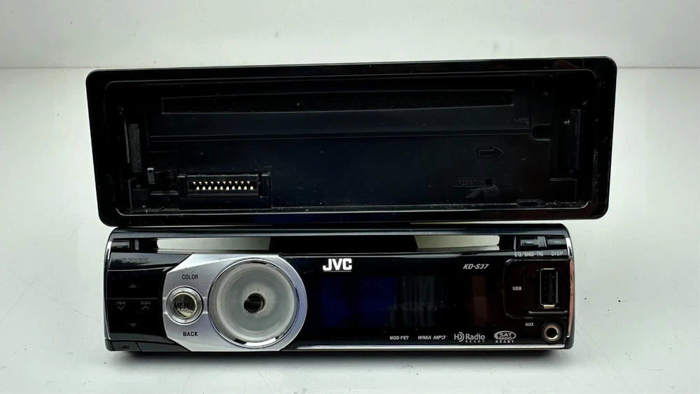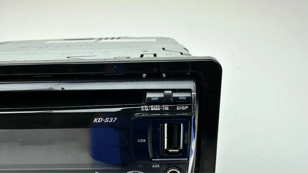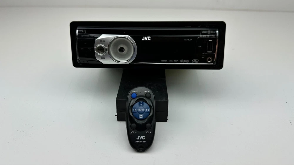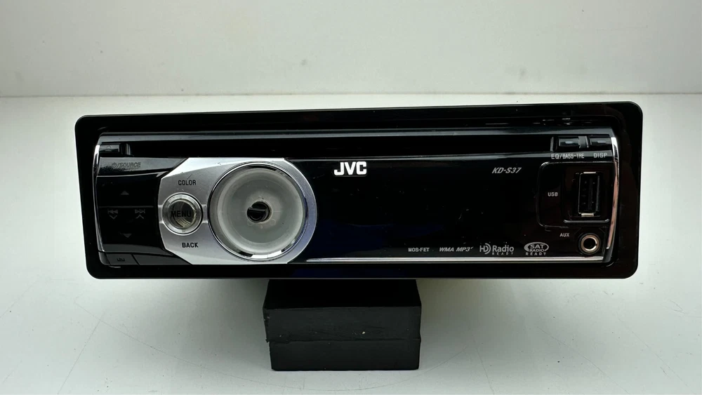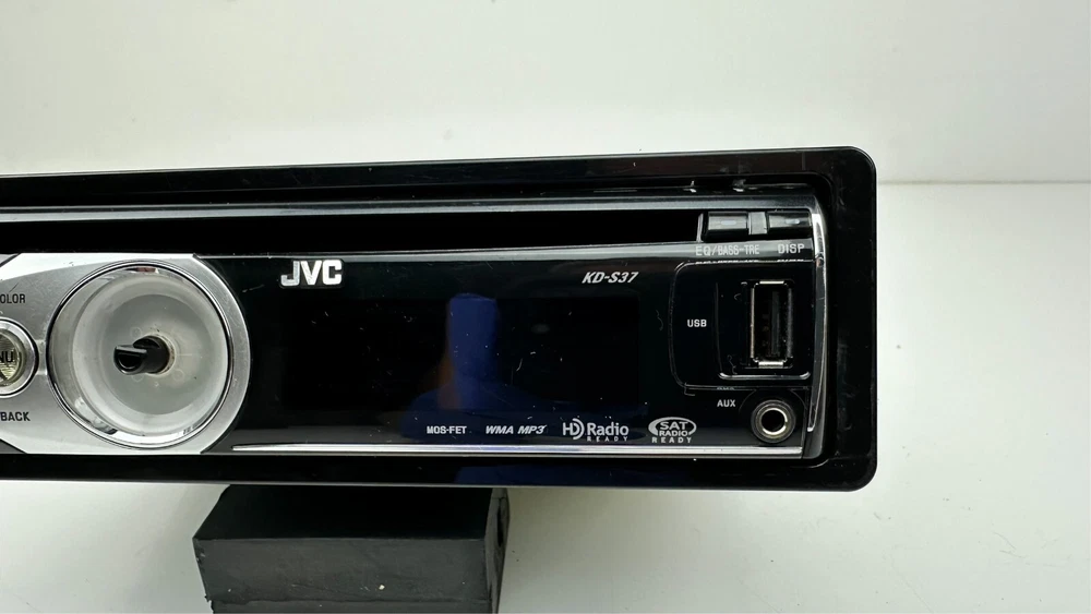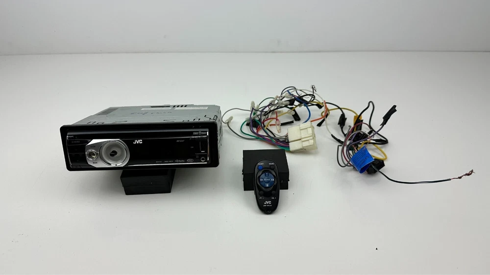 Description: A used tested and working fully functional JVC Model # KD-S37 with remote control model # RM-RK50 and with wiring harness in dash CD Player stereo/radio receiver with detachable faceplate, 1 DIN, HD radio ready and satellite radio ready, black in color with silver trim/accents, WMA, MP3, Aux port, USB port, EQ, with sleeve and bezel. The big main knob on the left side is missing. I do have another similar radio in a separate listing it is a JVC model # KD-S36. Details: Black with silver trim Model # KD-S37 Remote Model # RM-RK50 JVC 1 DIN AM/FM Stereo Receiver & CD Player Satellite radio ready HD ready EQ WMA, MP3, Aux input, USB input I have a bunch of car stereos some OEM some aftermarket that I will be listing that my dad pulled out of cars over the years from his shop. Condition: Mechanically in good fully functional condition with a good working radio and CD player. The main big knob on the left side is missing. Cosmetically in excellent condition with minimal wear on the faceplate and receiver just some very fine light swirl type scratches on the display screen but will never notice them when installed they are very minor. It is very shiny, glossy and clean. Hardly any signs of wear. Magic marker written on top of radio from when my dad removed it long ago at his shop. Super clean unit Remote control has some wear on the buttons with some faded out lettering and symbols and has light scuffs and scratches mainly on the front and back side. Wire harness looks pretty nice. Sold as is. See pictures and video when available for further details on condition and to see what you are getting as photos are part of the listing and description. Used parts could need repairs. Shipping : Shipping not free to Alaska, Hawaii, Puerto Rico, APO's and any excessive shipping locations including other countries. Contact me before purchasing if from another country. I ship fast same or next day and package well. Returns: Buyer pays return shipping cost no matter what the reason for returning it is and if you lie about the reason you are returning it I will report you. Part must be unused in the same condition can not be plugged in and no missing or swapped parts as I will inspect it and will put markings/tape in spots to assure it wasn't tampered with. If the tape is tampered with, removed, cut, missing it is not eligible for return. I will report you for abusing the return policy if anything shady is done have some morals I have kids and pets to feed as well. I prefer immediate payment but buyer has up to 7 days to pay before I open an unpaid item case.
