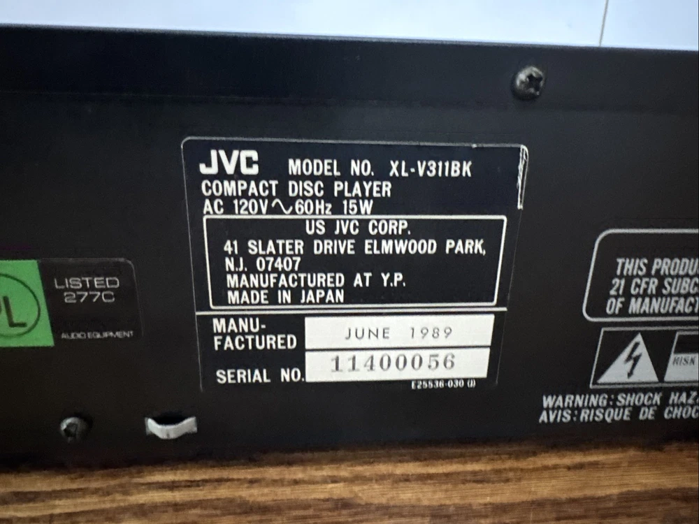 JVC Vintage 1989 CD PLAYER XL-V311BK COMPACT DISC PLAYER NO REMOTE this was fully tested and working as it should check. Check out photos very little wear as far as cosmetic. Thanks for looking.