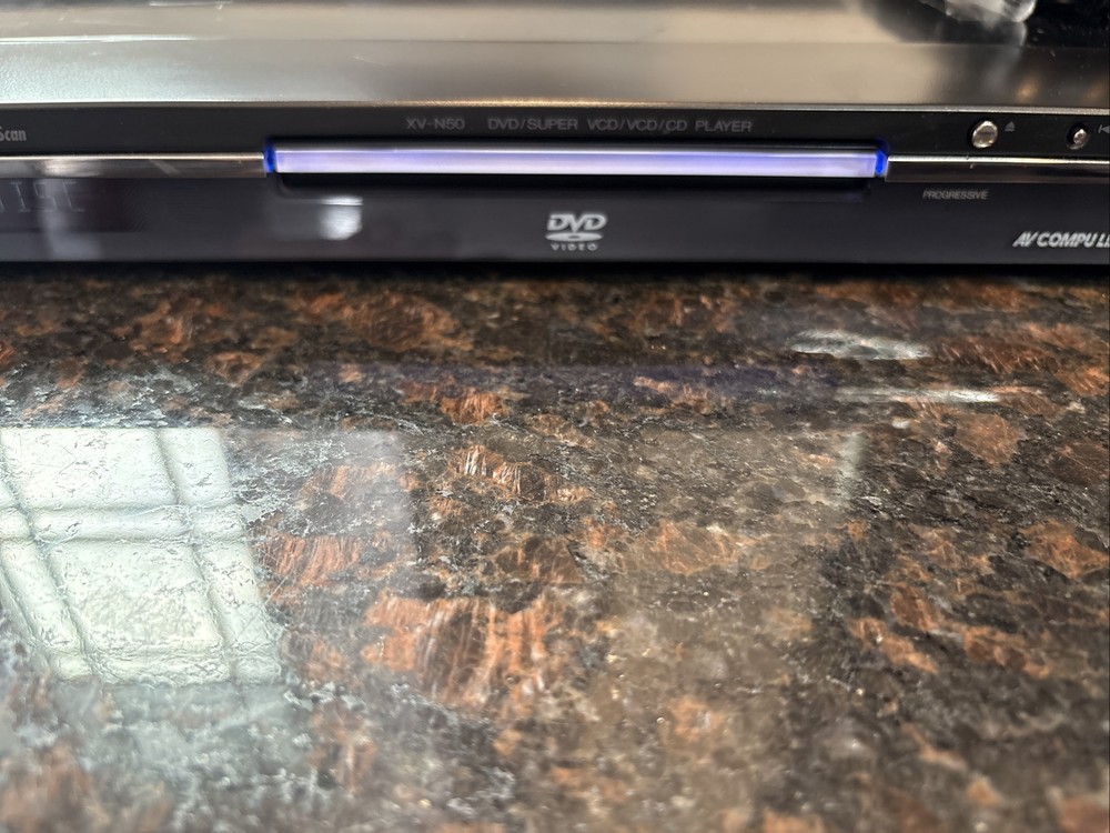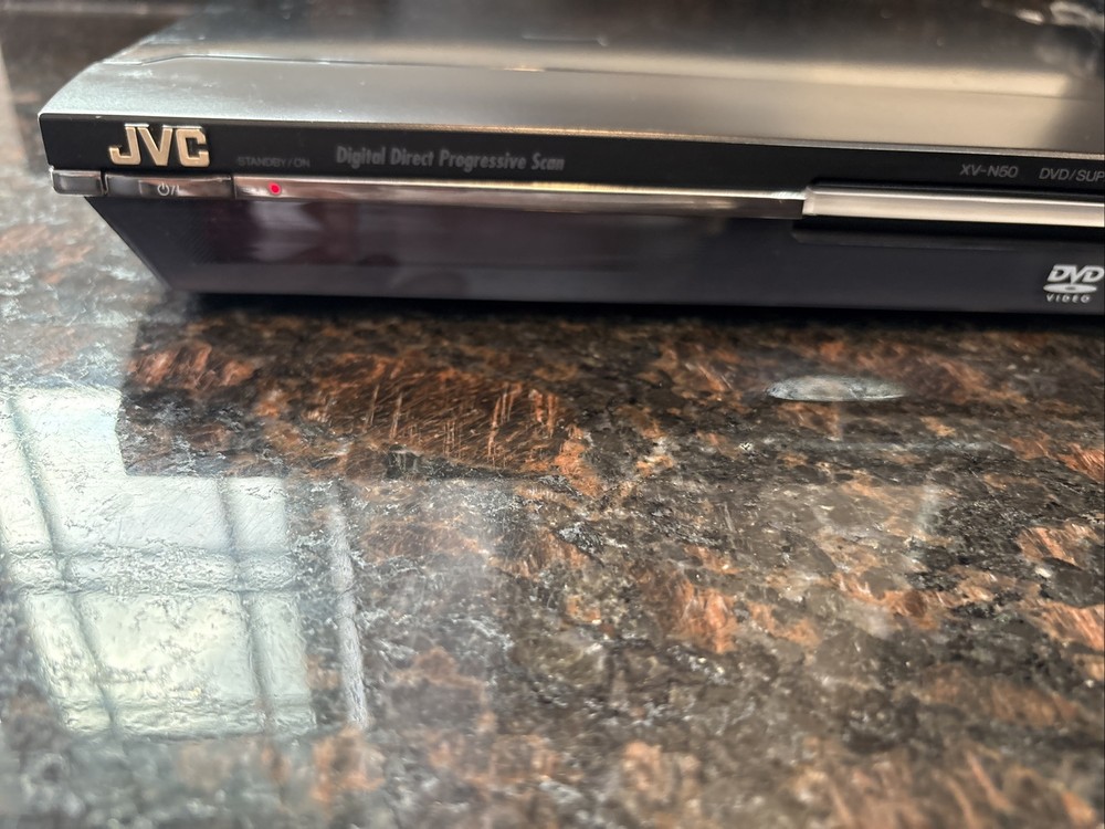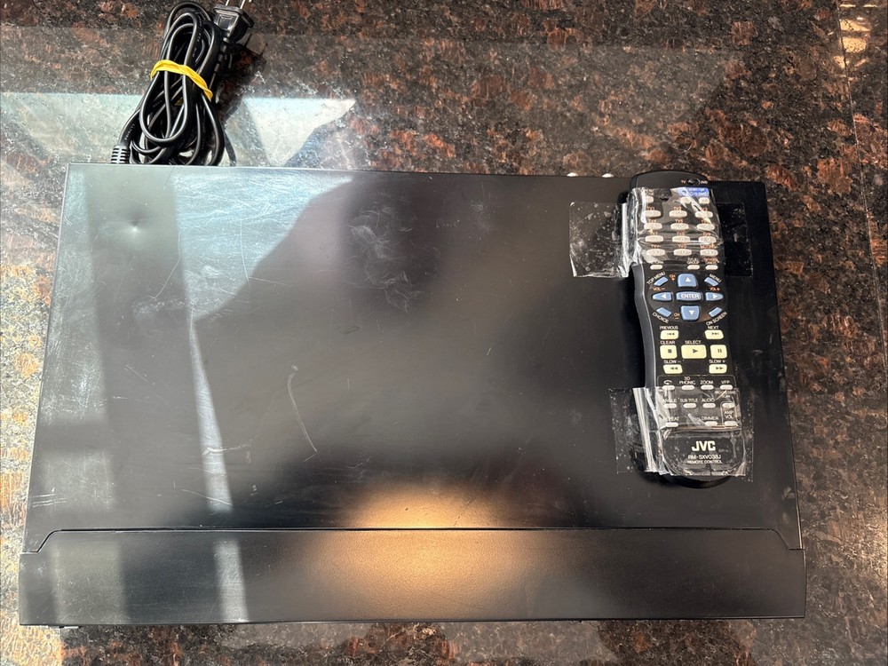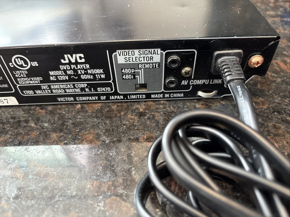 The JVC XV-N50BK DVD Player is a black device that plays DVDs with region code 1. It comes with a remote control and has been tested to be in working condition.