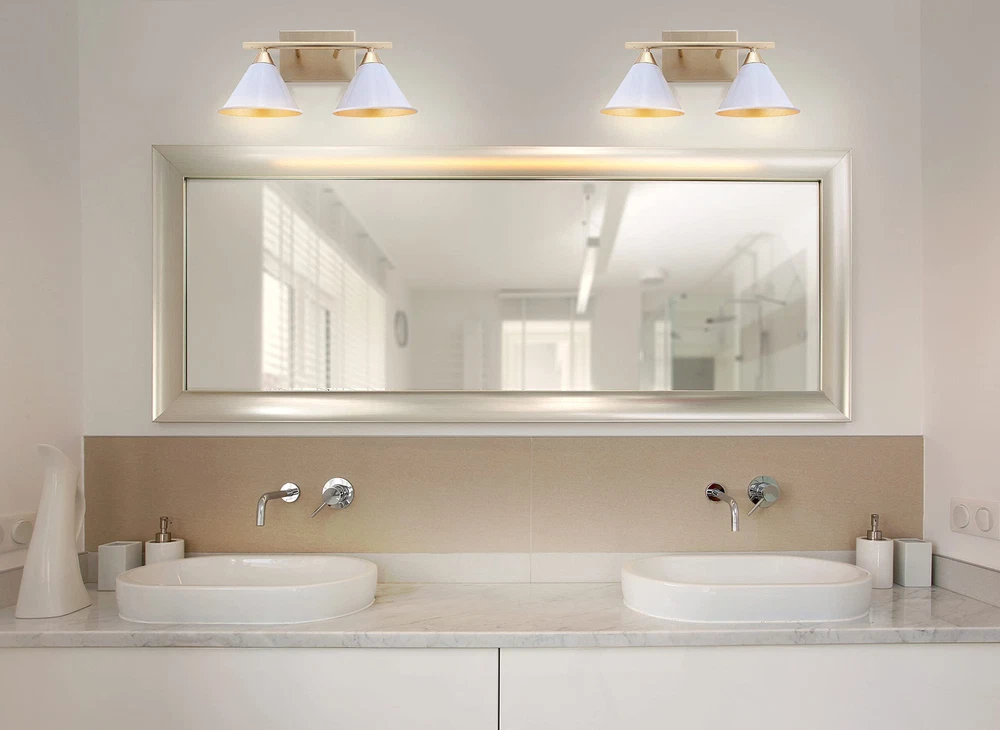This lighting fixture is a stylish and functional upgrade—the sleek white metal and subtle gold accents add a modern yet versatile touch. Perfect for bathrooms or dressing areas, it brightens up the space beautifully while complementing different decor styles. Easy to install with quality construction, it gives any room an instant refresh. Love how it looks above the mirror!