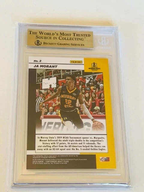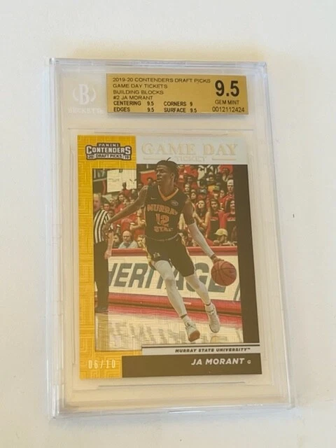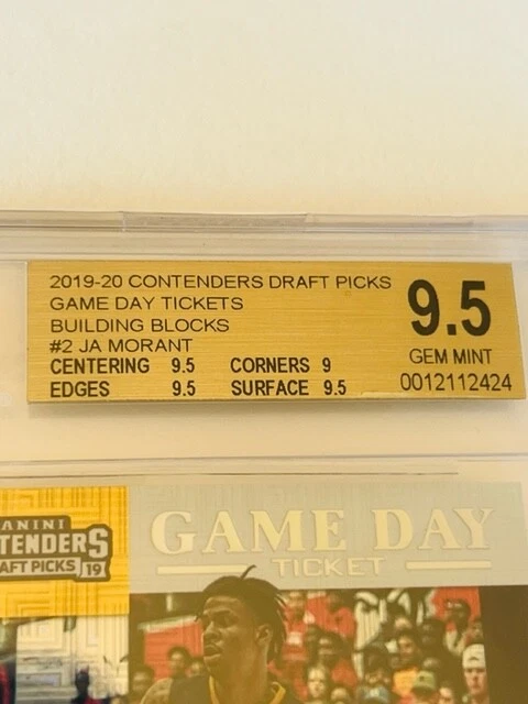 Absolutely awesome and highly collectible 2019-20 Ja Morant Mosaic Gold Game Day Ticket Contenders 6/10 serial numbered Rookie Graded a BGS 9.5 Mint LOW population GEM MINT. See all pictures for amazing condition, size, and detail. There are absolutely no returns on graded sports cards as you know exactly what you are getting because it is professionally graded and the market for sports cards changes literally on a daily basis. Check out my store for some of the rarest vintage collectibles online from all eras. Thanks for looking and have a great day! :)