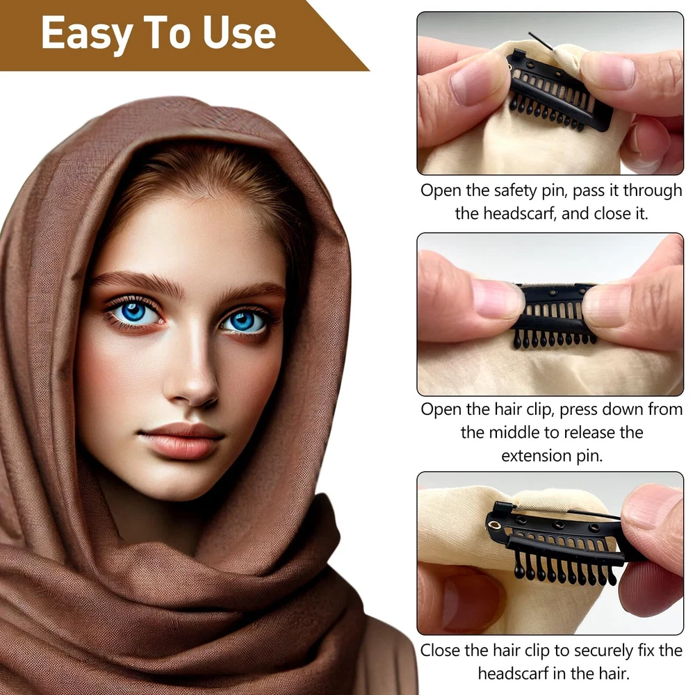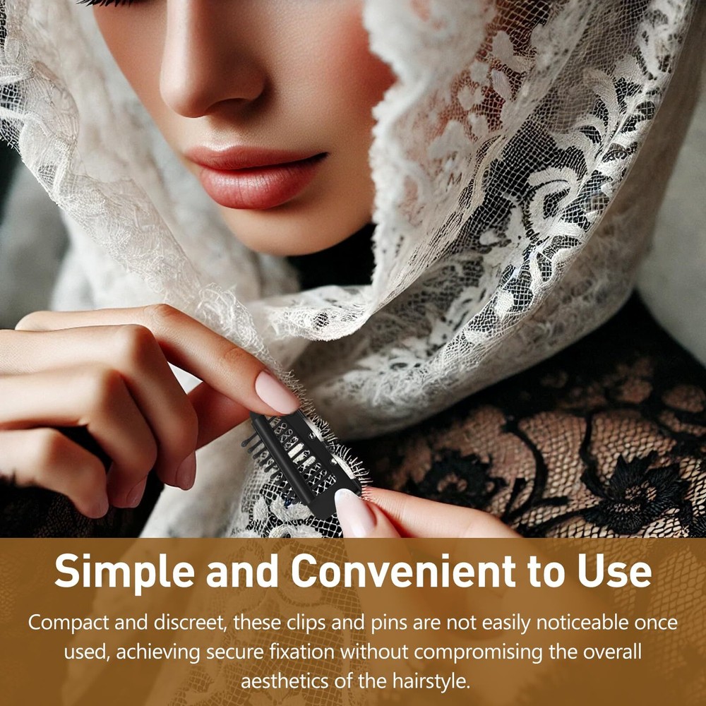 Jaasuee 10 Pcs Safety Pin Snap-Comb Hair Clips for Securing Dupatta, Turban, Sca Features: This set includes 10 hair clips, making it convenient to carry and use as needed, ensuring you always have a secure way to fasten your headscarf or hair accessories. These dupatta clips are widely applicable, suitable for various headscarves, hair accessories, DIY hair extensions, and even wedding headscarves, providing versatility in their use. The unique design of these clips features safety pins and 10 teeth, offering enhanced security for your headscarf. The silicone strips ensure that your hair remains undamaged while providing a strong hold. These safety pin hair clips are designed for easy use, allowing them to be perfectly hidden within your headscarf or fabric. They are simple to install and remove, making them highly practical for daily use. With their secure grip and discreet design, these clips are perfect for anyone looking to keep their headscarf or hair accessories in place, whether for a wedding, special event, or everyday wear. Details: This set of 10 snap-comb hair clips, featuring safety pins and silicone strips, is designed for securely fastening a variety of headscarves, turbans, wedding veils, and wig pieces. Each clip is equipped with 10 teeth and a silicone strip, ensuring a firm hold without damaging the hair. These versatile clips are perfect for securing your dupatta, headscarf, or hair accessories in place, whether you're dressing for a wedding, special event, or everyday wear. The safety pin design allows the clip to be discreetly hidden within the fabric, making it easy to install and remove as needed. Features: This set includes 10 hair clips, making it convenient to carry and use as needed, ensuring you always have a secure way to fasten your headscarf or hair accessories. These dupatta clips are widely applicable, suitable for various headscarves, hair accessories, DIY hair extensions, and even wedding headscarves, providing versatility in their use. The unique design of these clips features safety pins and 10 teeth, offering enhanced security for your headscarf. The silicone strips ensure that your hair remains undamaged while providing a strong hold. These safety pin hair clips are designed for easy use, allowing them to be perfectly hidden within your headscarf or fabric. They are simple to install and remove, making them highly practical for daily use. With their secure grip and discreet design, these clips are perfect for anyone looking to keep their headscarf or hair accessories in place, whether for a wedding, special event, or everyday wear. Details: This set of 10 snap-comb hair clips, featuring safety pins and silicone strips, is designed for securely fastening a variety of headscarves, turbans, wedding veils, and wig pieces. Each clip is equipped with 10 teeth and a silicone strip, ensuring a firm hold without damaging the hair. These versatile clips are perfect for securing your dupatta, headscarf, or hair accessories in place, whether you're dressing for a wedding, special event, or everyday wear. The safety pin design allows the clip to be discreetly hidden within the fabric, making it easy to install and remove as needed. eBay integration by