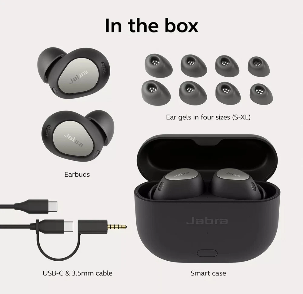 Experience the ultimate wireless audio experience with the Jabra Elite 10 True Wireless Bluetooth Earbuds in Matte Black. These earbuds are designed for comfort and convenience, with a form factor that is in-ear only. The double earpieces provide a more immersive audio experience, while the Bluetooth technology ensures seamless connectivity. The Jabra Elite 10 earbuds come equipped with a range of features, including surround sound, noise isolation, and active noise cancellation. You can easily control the playback with touch controls or the built-in microphone, which provides crystal-clear audio for calls and voice commands. These earbuds also have a rechargeable battery and wireless charging, making them the perfect addition to your audio collection. Never used and has all accessories just no box that’s it . Don’t be afraid to reach out if you have any questions Thank you 🙏.