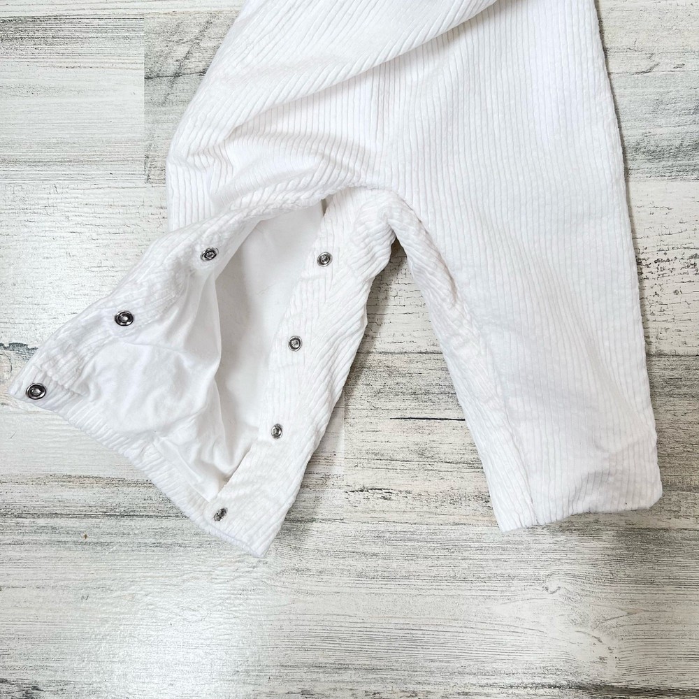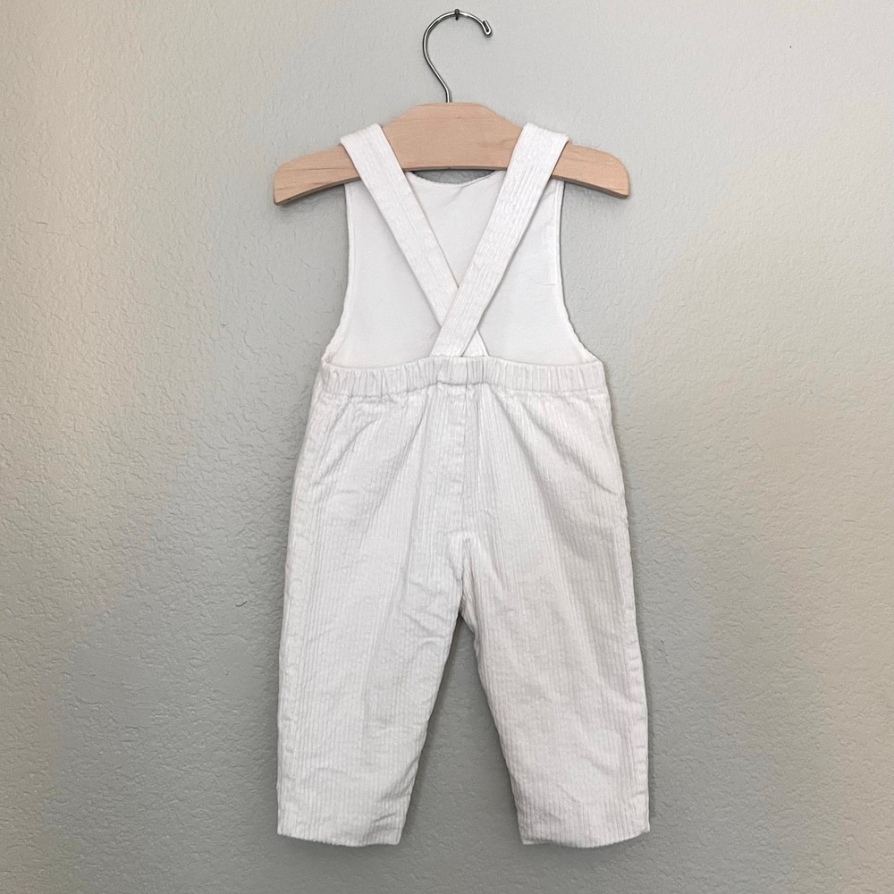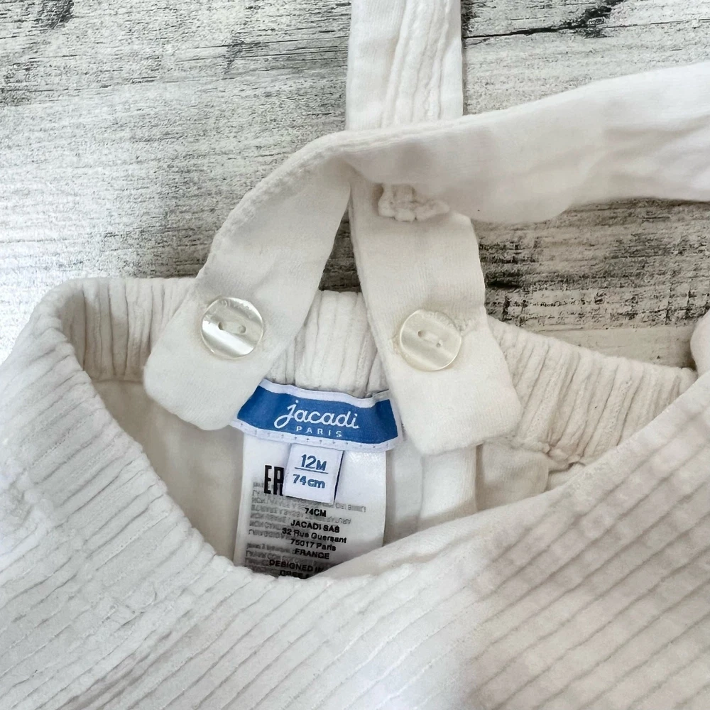 Jacadi Corduroy Overalls Boys 12M White Lined Cross-Back Snaps Photo Outfit