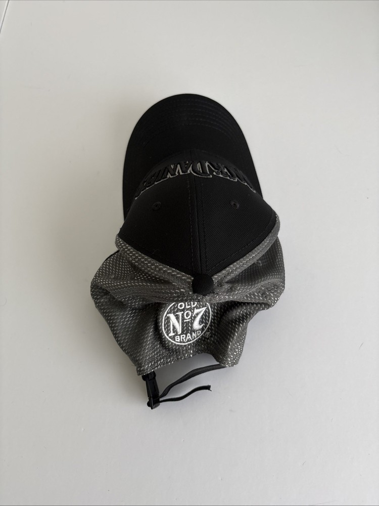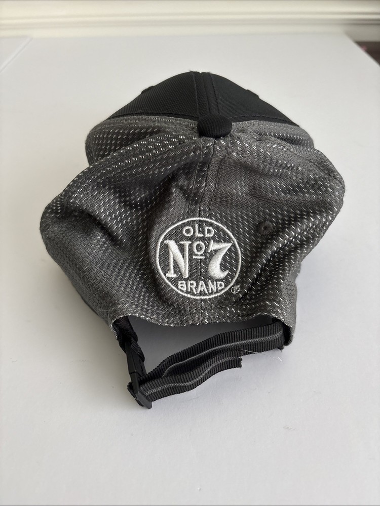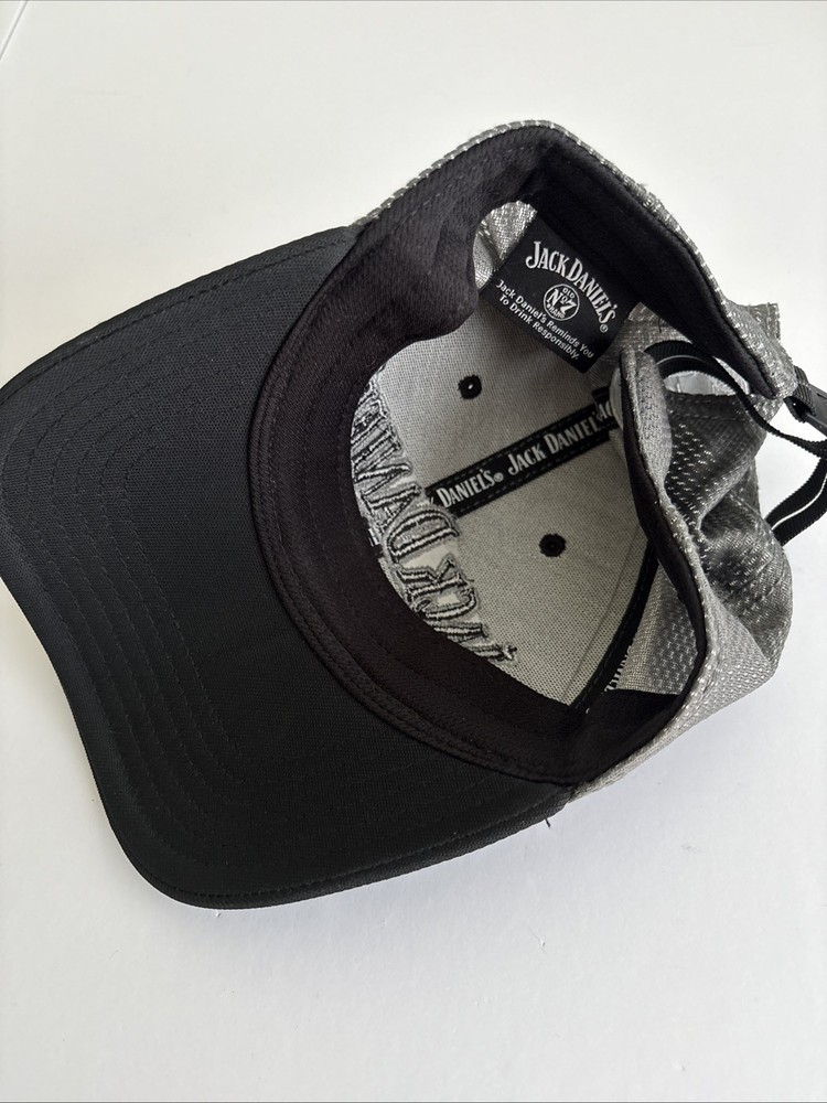 This Jack Daniels Old No 7 License Truckers Hat is a two-toned baseball cap featuring a black and gray color combination with a vintage look. Made of polyester, nylon, and spandex blend with a canvas fabric type, it is designed for men and adjusts with an adjustable strap. The hat is ideal for various occasions such as travel, parties, casual wear, or work attire, making it a versatile accessory for any season. Celebrating the bourbon theme, this Jack Daniels branded cap adds a stylish touch to any outfit. Perfect pre-owned condition see pictures!