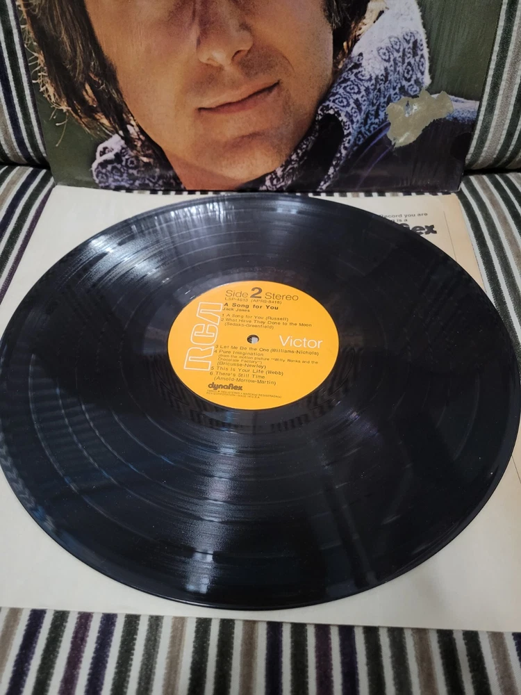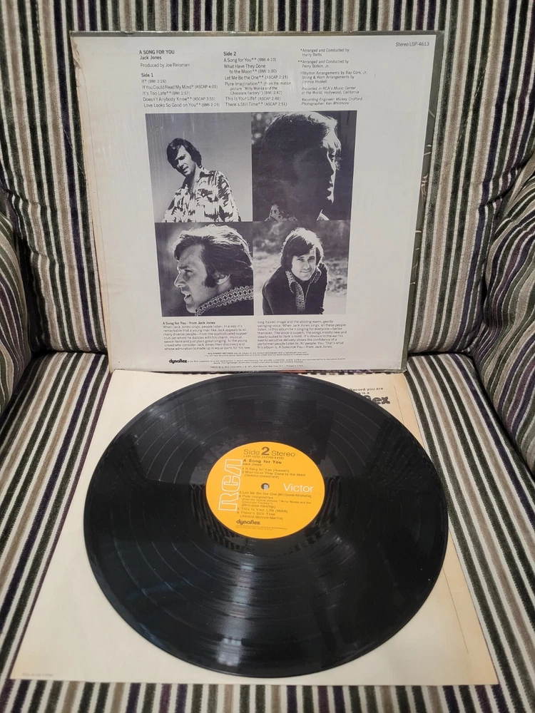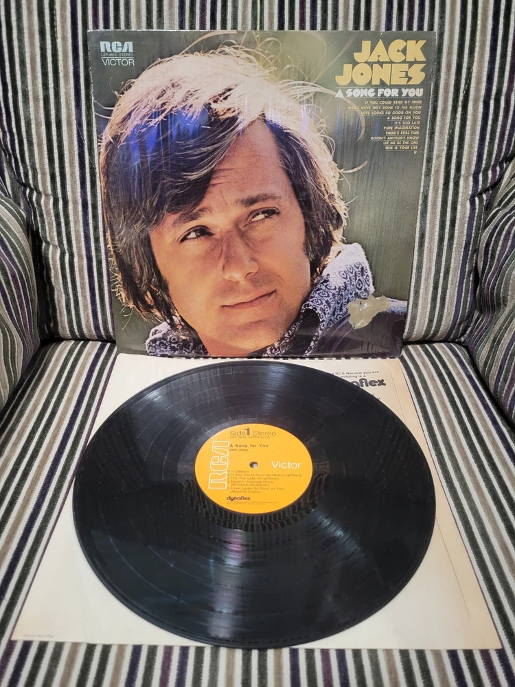 This Jack Jones LP, titled "A Song For You," is a first edition released in 1971 by RCA Victor. The 12" vinyl record features 33 RPM speed and high-fidelity sound, with excellent (EX) inlay and sleeve grading. The cardboard sleeve case type and black color add to the vintage look of this pop, easy listening, and jazz genre record. The LP includes original inner sleeve and cover, making it a must-have for collectors. The record grading is near mint (NM or M-), ensuring excellent listening quality. This vinyl record is a great addition to any music collection and a perfect gift for a music lover.