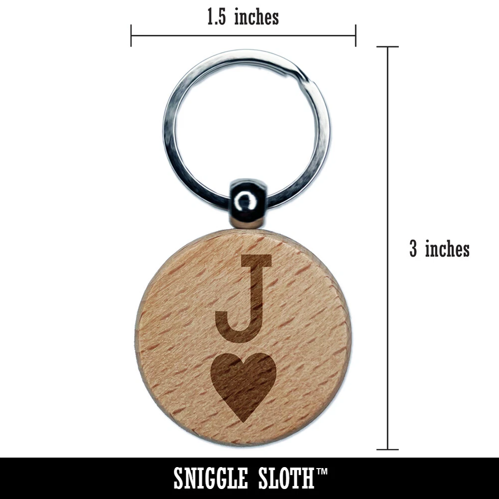 Jack of Hearts Card Suit Engraved Wood Round Keychain Tag Charm