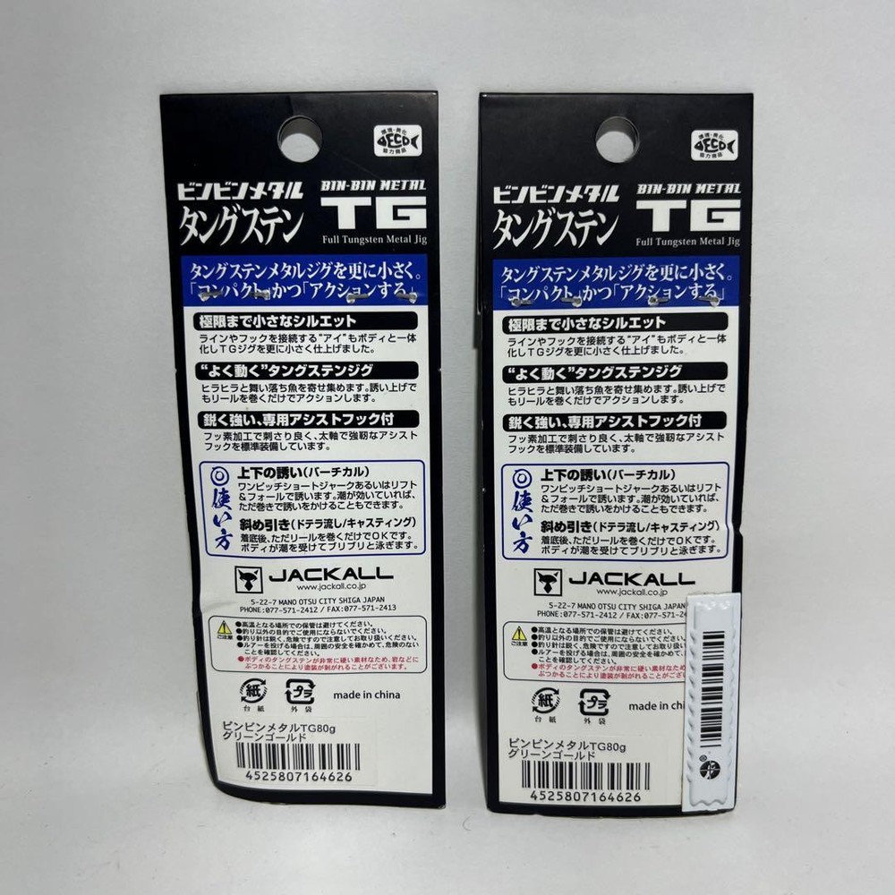 Item Title Fishing Lure Jackall Bing Metal Tg Jig 80G 2 Pieces Payment Supports managed payments Please pay within 5 days after auction is finished. About Us We are located in Japan. It's our pleasure to make you happy by proposing our recommend item. If you have any questions or request about items, please feel free to ask us. International Buyers - Please Note: -Import duties, taxes, and charges are not included in the item price or shipping charges. These charges are the buyer's responsibility. -Please check with your country's customs office to determine what these additional costs will be prior to bidding/buying. -These charges are normally collected by the delivering freight (shipping) company or when you pick the item up - do not confuse them for additional shipping charges. -We do not mark merchandise values below value or mark items as - gifts - The US and International government regulations prohibit such behavior. Thank you for your understanding.