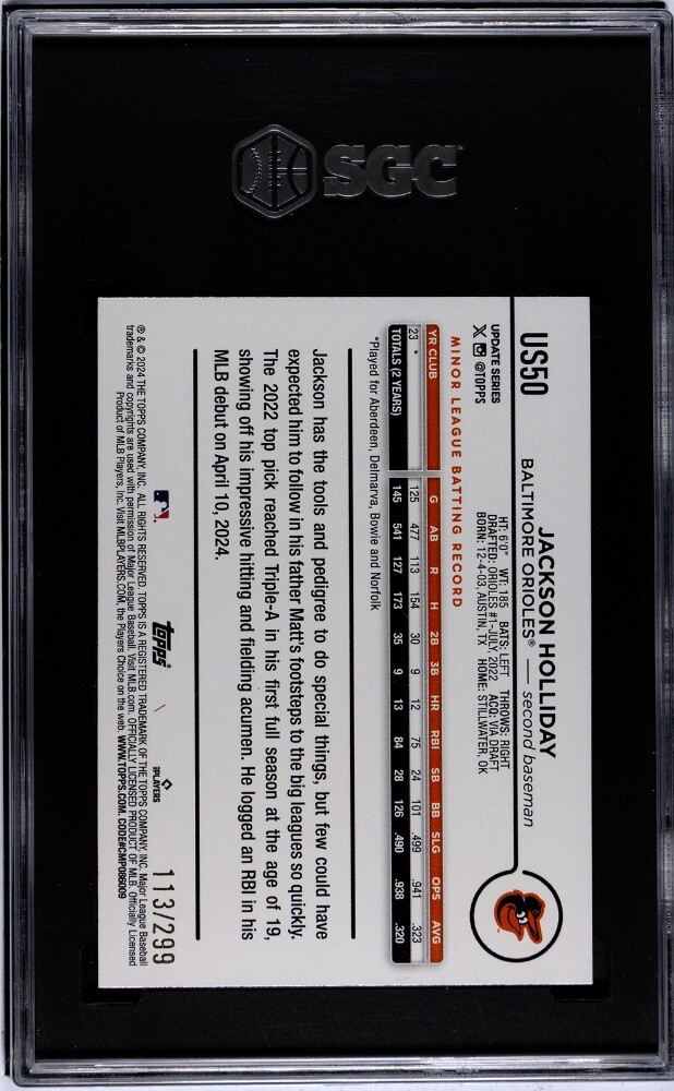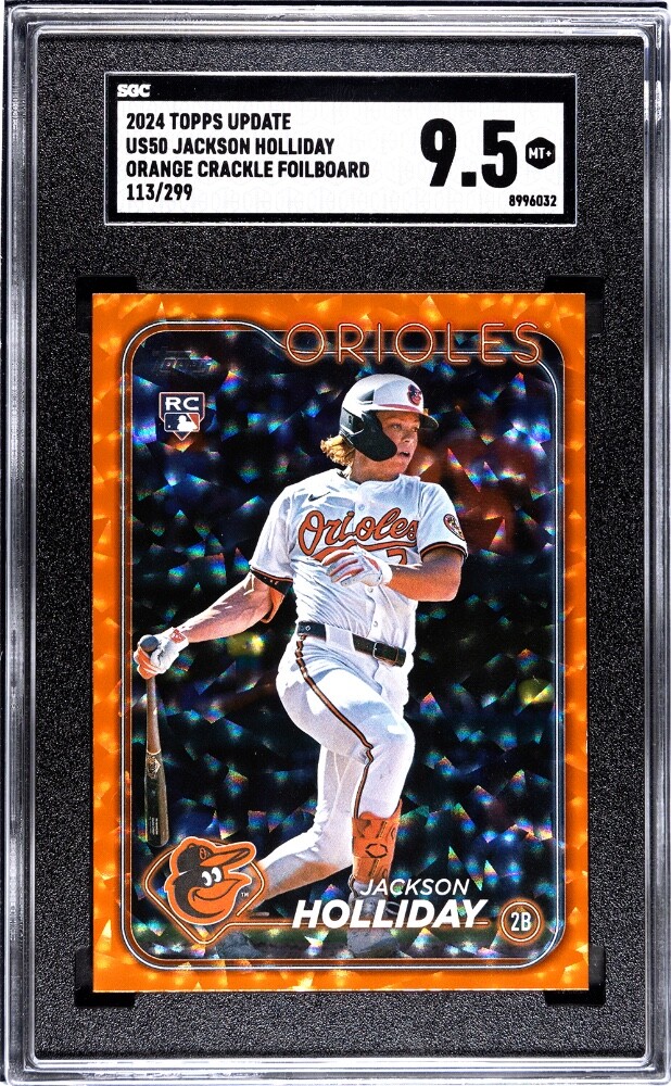 JACKSON HOLLIDAY 2024 TOPPS UPDATE (RC) US50 ORANGE CRACKLE FOILBOARD 113/299 SGC 9.5 COLOR MATCH!! POP 1 (at time of listing)!