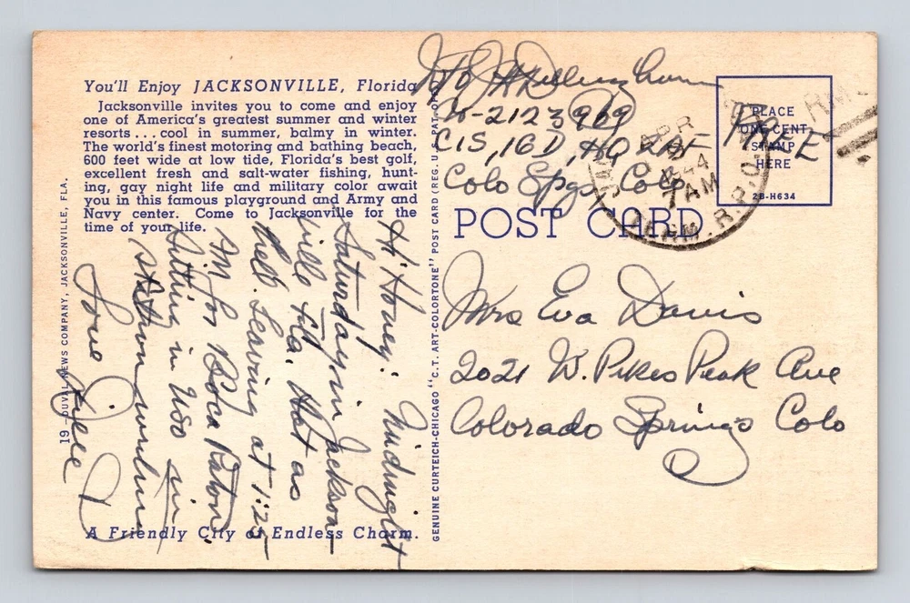 Unit of Sale: Single Unit Country/Region of Manufacture: Unknown Subject: Cities & Towns Type: Printed (Lithograph) City: Jacksonville Theme: Cities & Towns Region: Florida Original/Licensed Reprint: Original Postage Condition: Posted Country: USA Era: Vintage