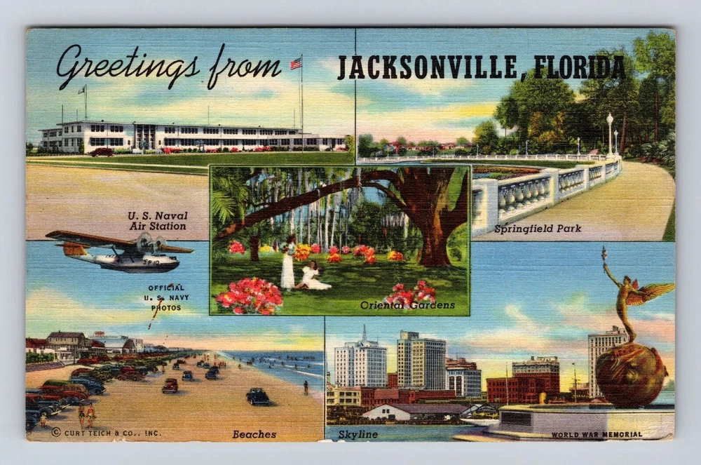 Jacksonville FL- Florida, Scenic Landmark Greetings, Vintage c1944 Postcard
