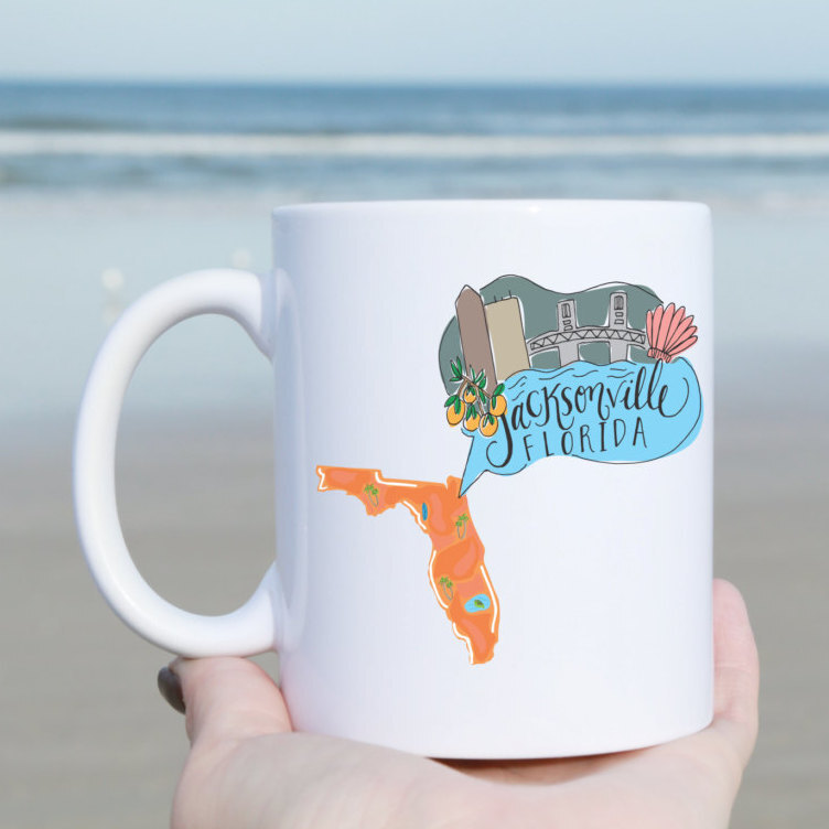 Jacksonville Florida Illustrated Coffee Mug Product Details.. This high quality 11oz. ceramic white mug has a premium hard coat that provides crisp and vibrant color reproduction sure to last for years. Perfect for all hot & cold beverages. The highest quality printing possible is used. It will never fade no matter how many times you wash it. Material: 100% Ceramic. Print both sides. Dishwasher and Microwave Safe. High Gloss + Premium White Finish. Printed in the U.S.A. Personalized & Custom. We support personalized and custom mug to add custom, when placing an order, you can add notes to the "order note" in shipping address section. Also you can contact us directly via message. Shipping Info. Ready to ship in 1 to 2 business days, All products are made-to-order and proudly printed in the United States. Shipped by USPS and DHL, You will receive your order in 5-7 days. Replace & Refund. All products are defective during shipping broken, chipped will be replaced free of charge. You are not satisfied with the product, we will refund 100% money to you. If any other issues arise, please do not hesitate to message, we would be more than happy to assist you.
