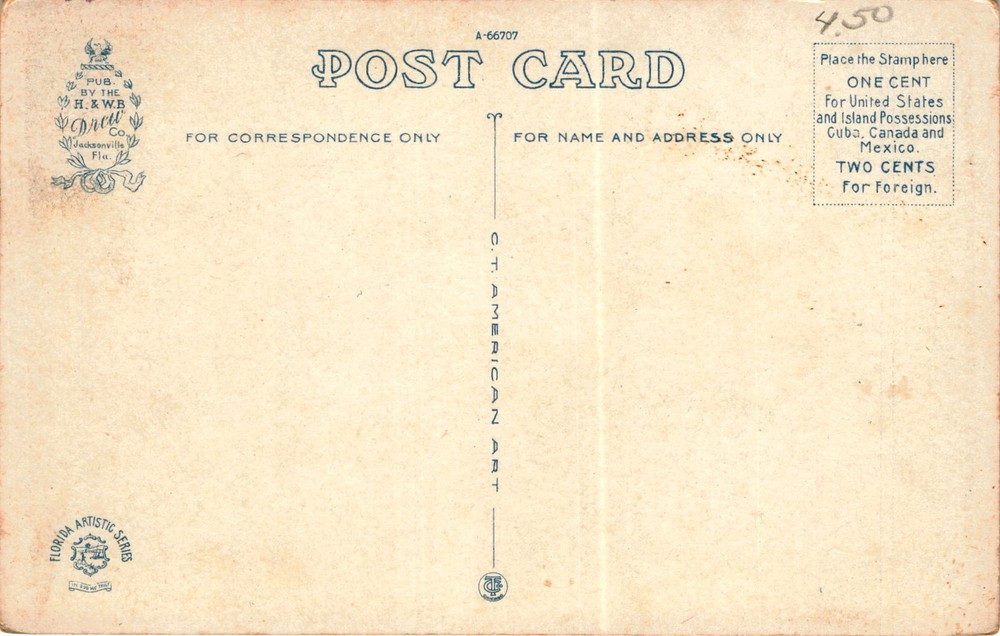 MAKE AN OFFER. THE MORE YOU BUY THE BETTER DEAL I WILL ACCEPT The postcard is a vintage one from Florida, published by the WH. & W.B. Drew Co. in Jacksonville. The front of the postcard features the message HONEY COME DOWN, I AM WAITING FOR YOU IN FLORIDA. It also includes an image or artwork from the Artistic Series by C.T. American.