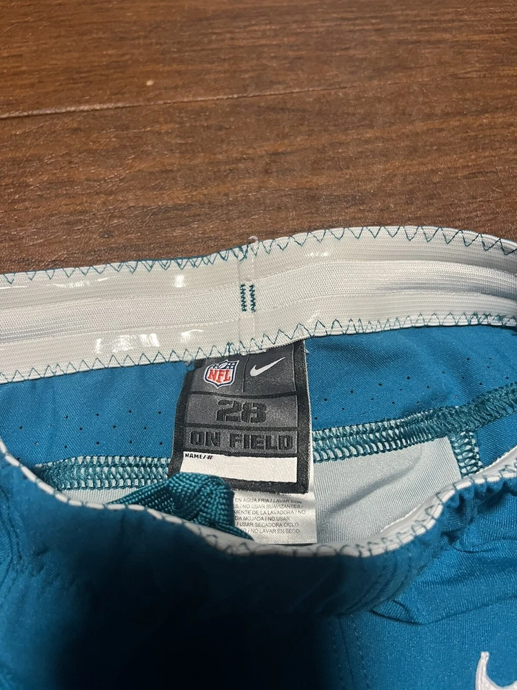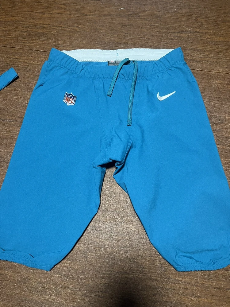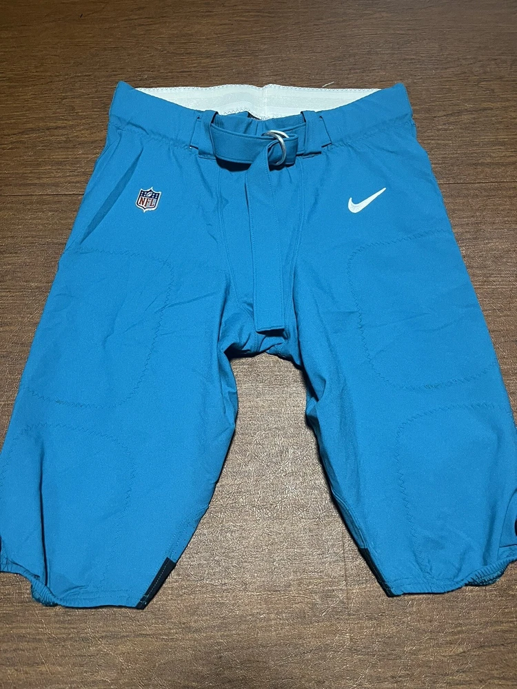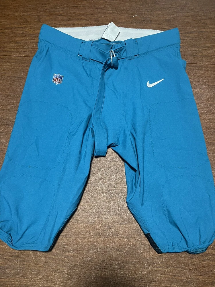These pants are issued from the Jacksonville Jaguars . We have size 26,28,32,35,38 40,42,44and 48. Please email us to make sure we still have your size before you buy it. These are authentic pants that were never used on the field. These are perfect for mannequins or if you want to wear to practice or to a game. They have a drawstring and some comes with the belt Please message us any questions you might have. I will ship out within 48 hours and it will be to you within a week. This price is for ONE pair. We can make a deal if you would like to buy bulk Check our profile for other Jacksonville Jaguars memorabilia and Game used items