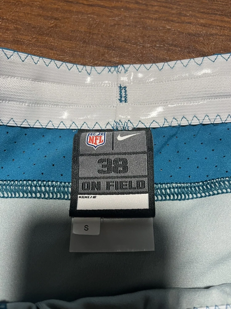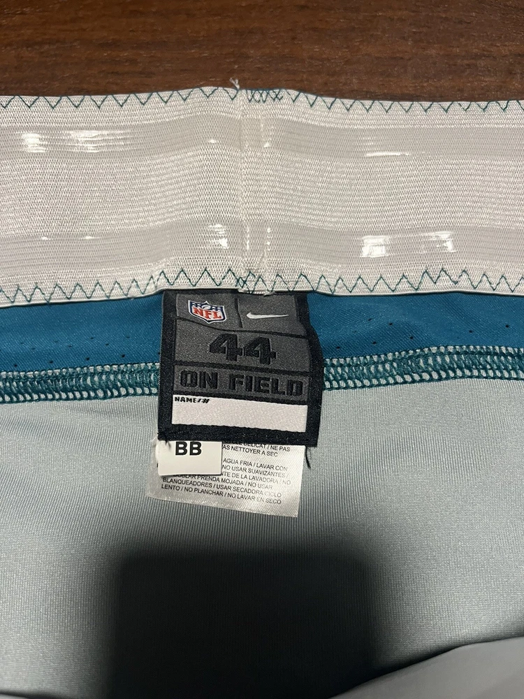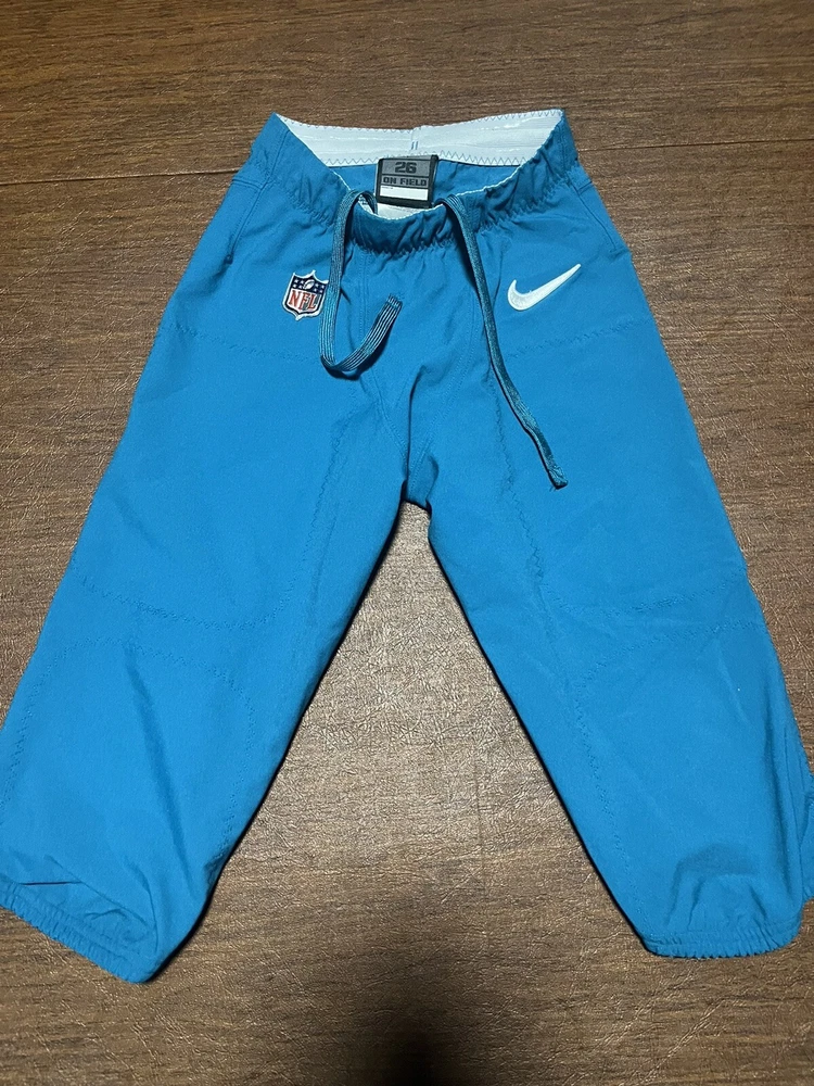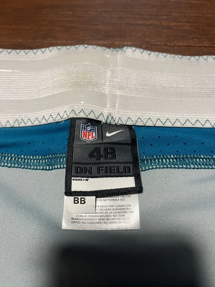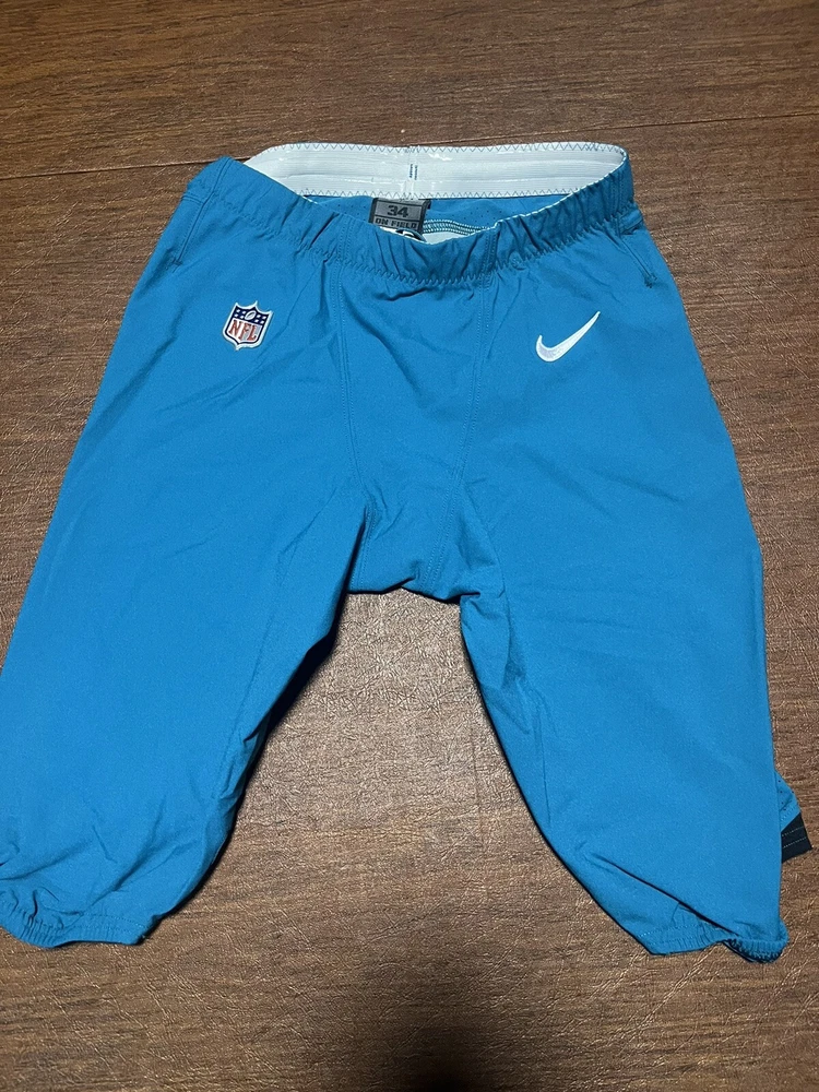 These pants are issued from the Jacksonville Jaguars . We have size 26,28,32,35,38 40,42,44and 48. Please email us to make sure we still have your size before you buy it. These are authentic pants that were never used on the field. These are perfect for mannequins or if you want to wear to practice or to a game. They have a drawstring and some comes with the belt Please message us any questions you might have. I will ship out within 48 hours and it will be to you within a week. This price is for ONE pair. We can make a deal if you would like to buy bulk Check our profile for other Jacksonville Jaguars memorabilia and Game used items