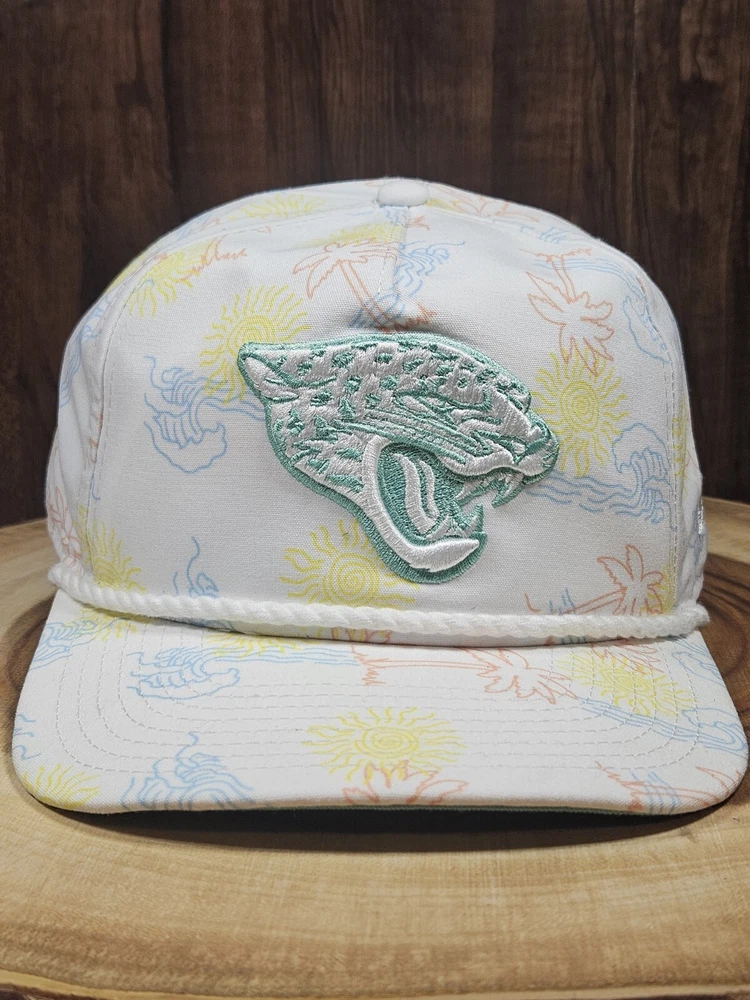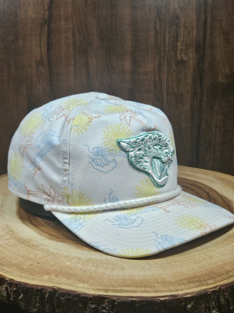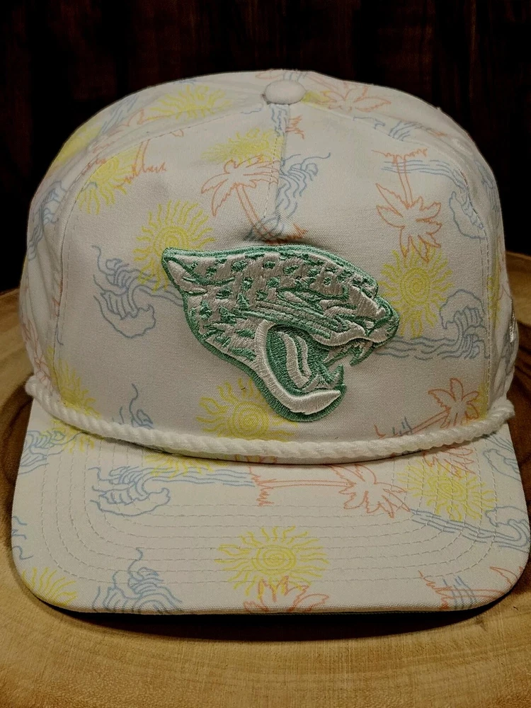 Show off your style with this Jacksonville Jaguars New Era Floral Golfer Rope SnapBack Adjustable Hat Cap. Perfect for any occasion, this hat is designed for men who want to add a touch of streetwear to their wardrobe. The floral pattern and golfer theme make it a great addition to your collection. Crafted with the finest quality, this hat features a rope and snapback for an adjustable fit. It is perfect for travel, weddings, parties, casual outings, formal events, workwear, and business meetings. Get ready to turn heads with this stylish hat that is both functional and fashionable.