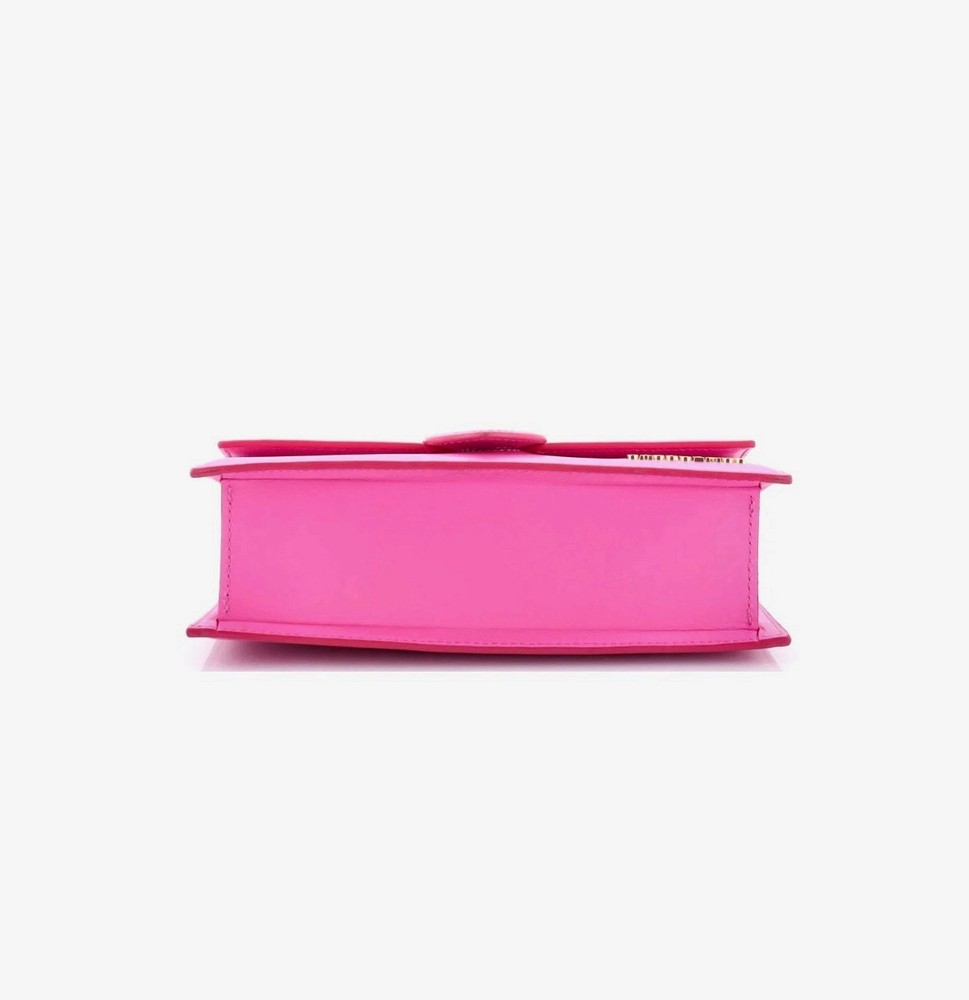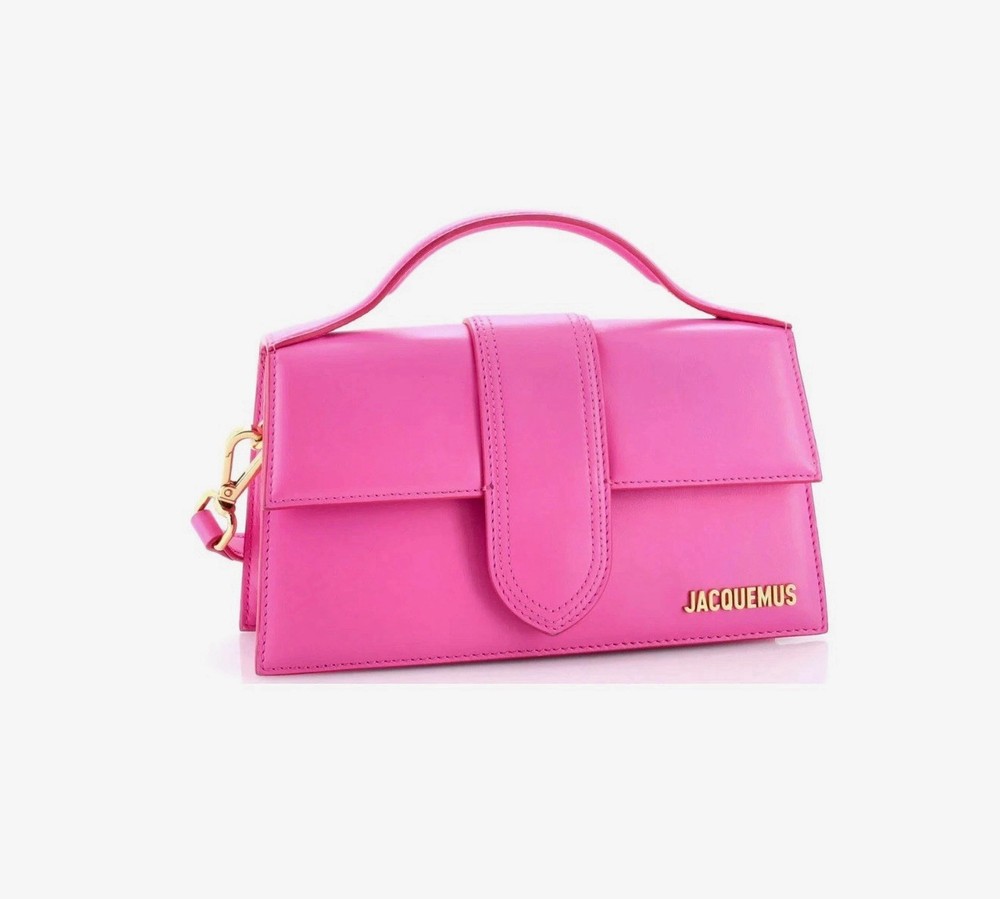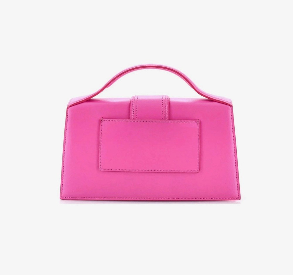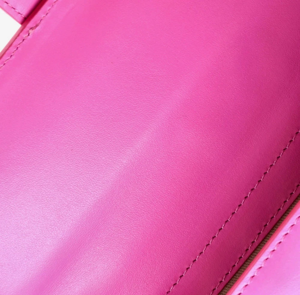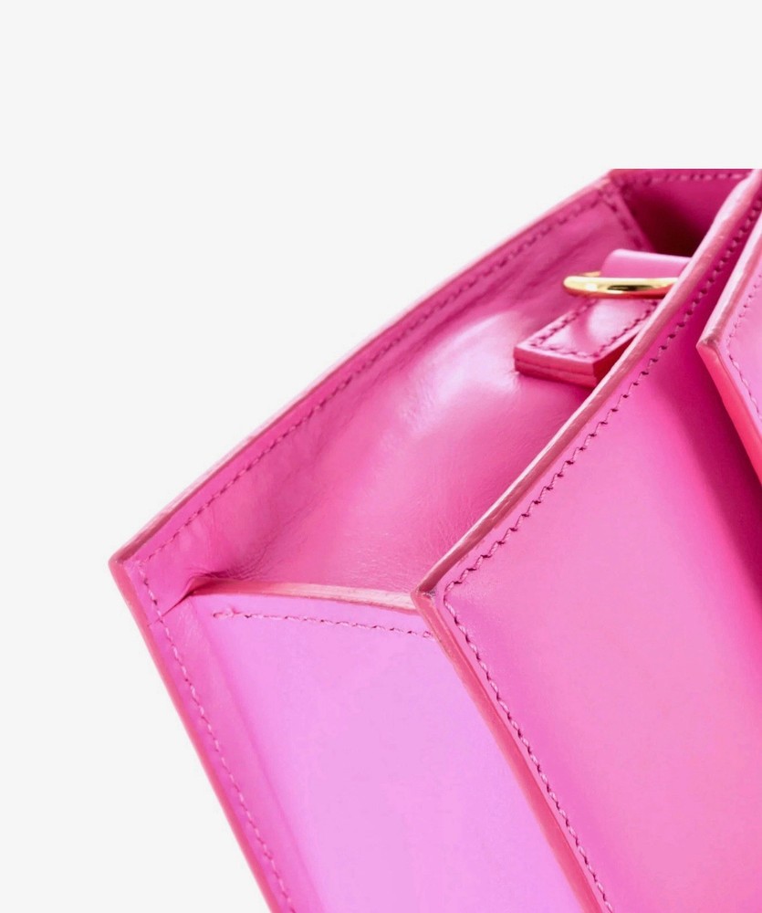 The Jacquemus Le Bambino Pink Bag is a stylish and luxurious satchel/top handle bag made from leather. With a solid pink exterior color and gold-plated hardware, this designer bag features a rectangular shape and a magnetic closure. The top handle style in pink leather adds a touch of elegance, while the adjustable strap offers versatile styling options. This brand new bag from Jacquemus is perfect for women looking for a fashionable and high-quality accessory to complete their outfit.