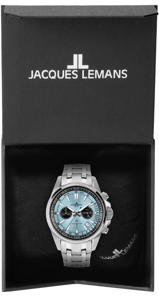 Jacques Lemans Men's Watch Chronograph Liverpool Steel / Light Blue 1-2117ZB