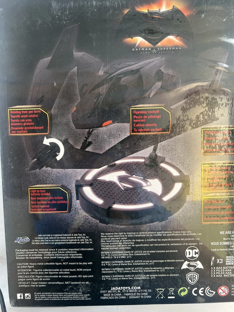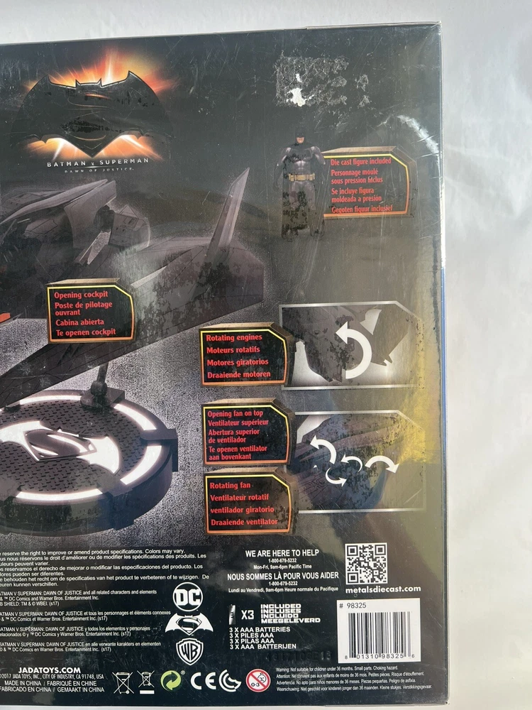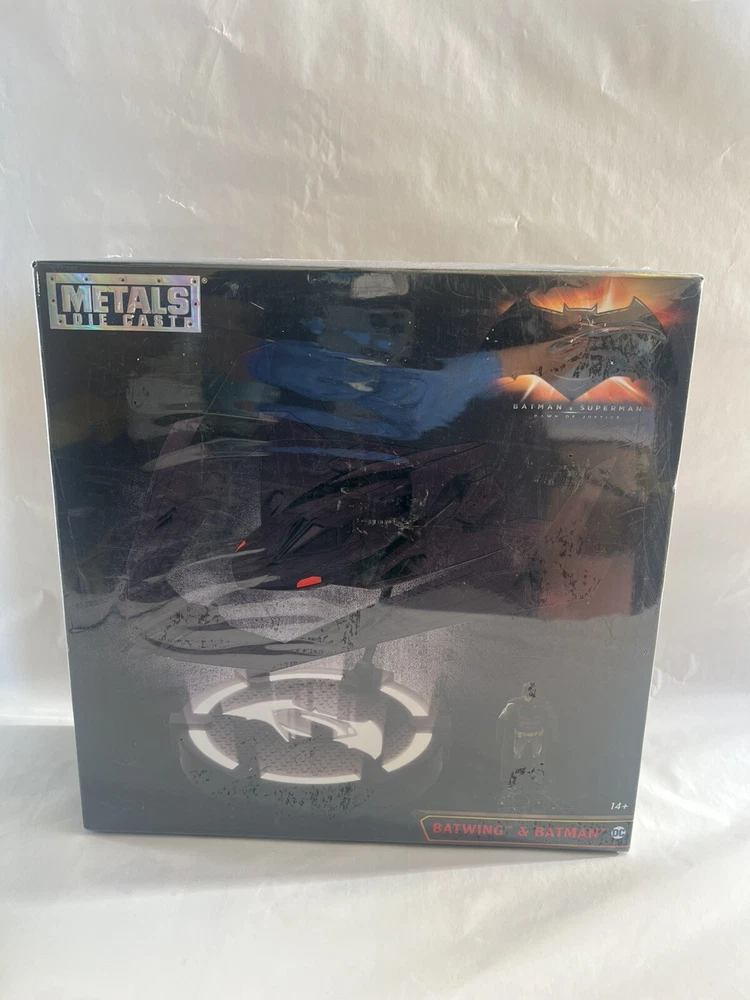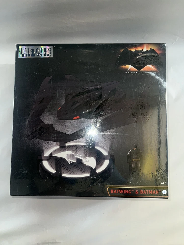 UPC: 801310983256 Time Period Manufactured: 2010-2019 Series: The History of The DC Universe Year Manufactured: 2016 gtin13: 801310983256 Vehicle Type: Ship Brand: Jada Toys MPN: 98325 Scale: 1:32 Featured Person/Artist: Seal Type: Action Figure Franchise: Batman Model: Batwing & Batman Color: Black Character: Batman Original/Licensed Reproduction: Original Vintage: No Movie: Batman v Superman: Dawn of Justice Material: Cast Metal, Die-cast