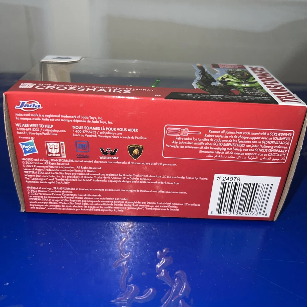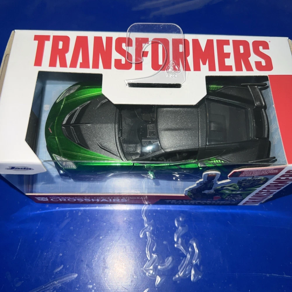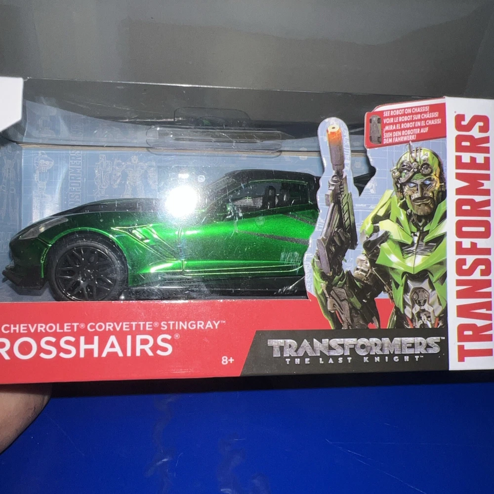 The Jada Toys Hollywood Rides Chevrolet diecast car is a 1:32 scale model of Crosshairs from Transformers: The Last Night. This green car is part of the 2016 series and is recommended for ages 8 and up. It is a detailed replica of the character from the movie, suitable for both boys and girls who are fans of the Cars franchise.