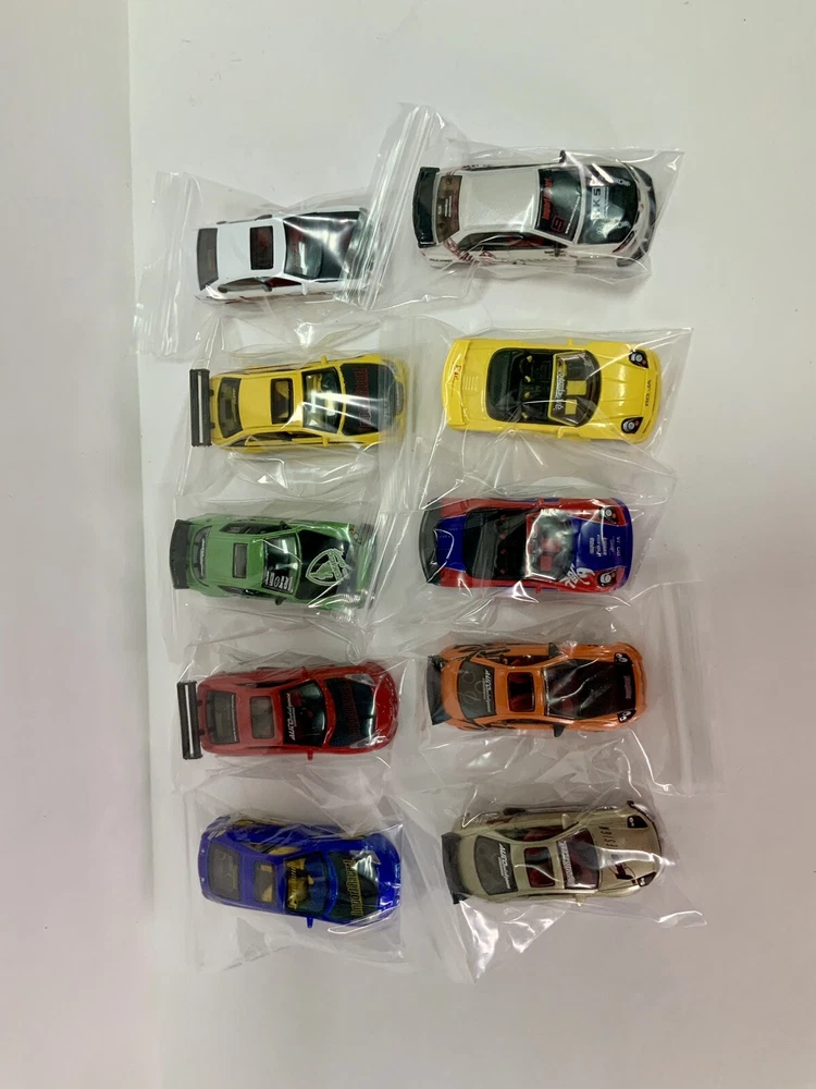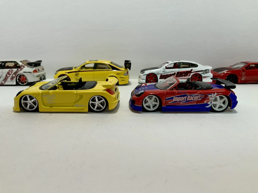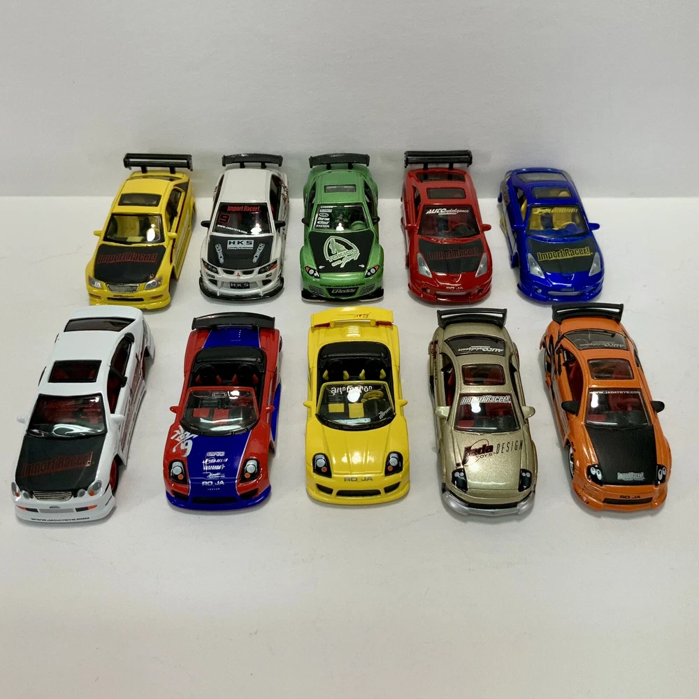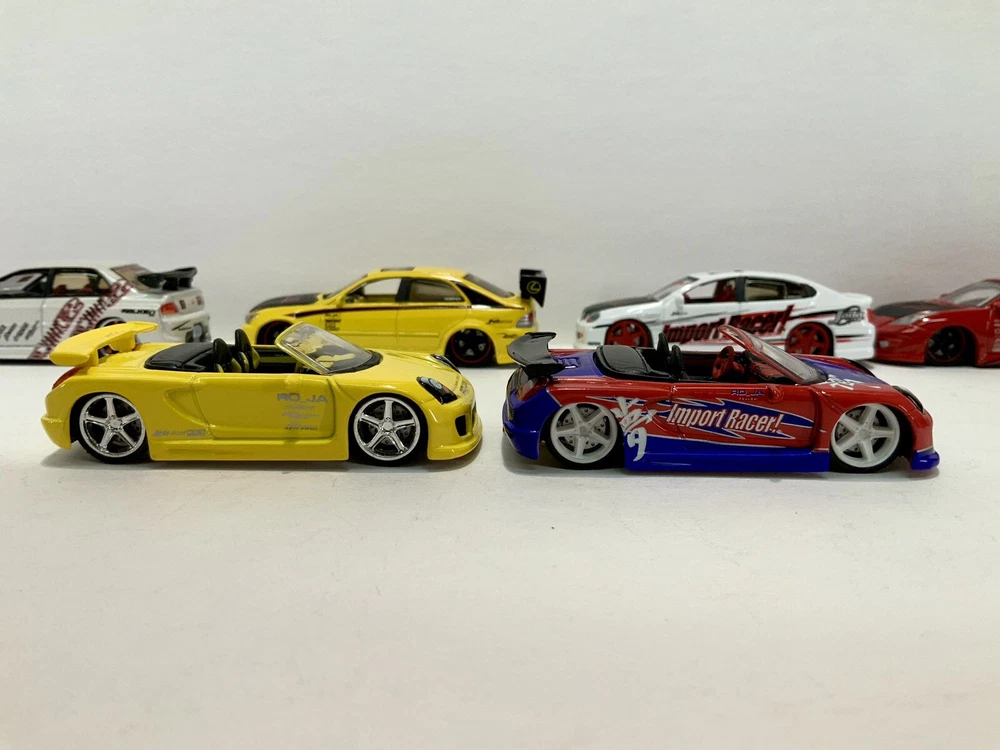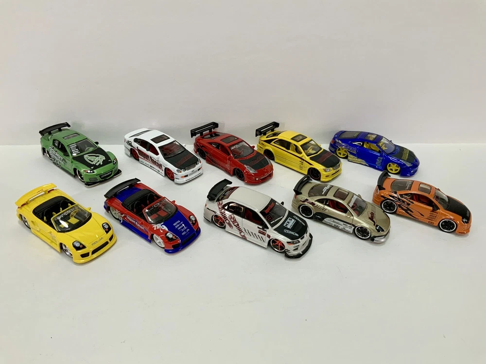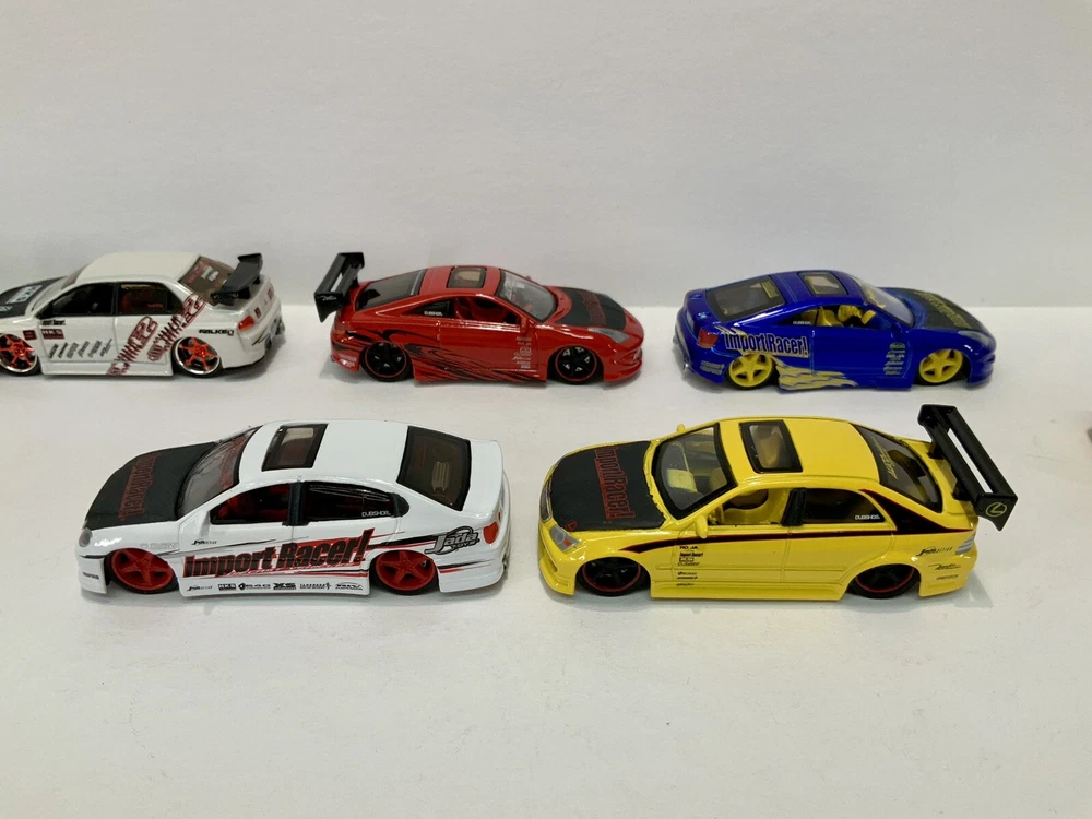 These are part of my personal collection it has been used only as a display in cabinet since it was purchased new 20+ years ago. Cars are in great condition, have never been played with, and comes from a smoke free home. Blue Toyota Celica is missing rear wing and orange eclipse has a crack in rear window. Please inspect pictures before buying. Extra care will be taken for packaging. All cars will be be bagged separately and bubble wrapped.