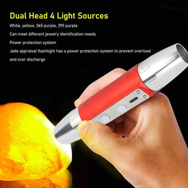 1. This jade flashlight is a must-have for jewelry and antique appraisal! The premium lamp beads deliver powerful, long-lasting light, while the four dual light sources (white, yellow, 365, 395) cover all inspection needs. Built with durable 304 stainless steel and aluminum alloy, it feels sturdy yet sleek. USB rechargeable for convenience—no more battery hassles. Perfect for professionals and hobbyists alike!