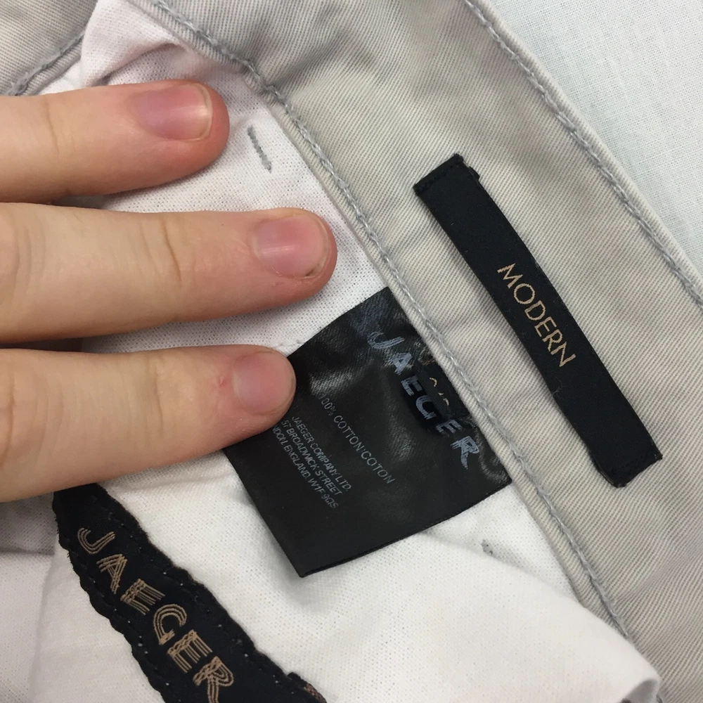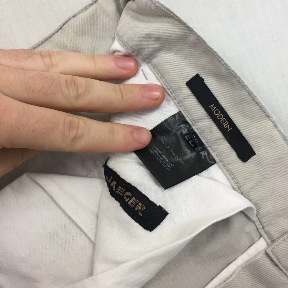 Style: Chino Size Type: Regular Department: Men Fit: Regular Personalise: No Garment Care: Machine Washable Brand: Jaeger Seller Notes: “Good used condition, check below for full description & photos.” Rise: Mid (10-12 in) Size: 34 Closure: Button Handmade: No Leg Style: Straight Accents: Button Occasion: Business, Casual, Travel Pattern: No Pattern Fabric Type: Canvas Type: Trousers Country/Region of Manufacture: Unknown Waist Size: 34 in Season: Autumn, Spring, Summer, Winter Pocket Type: Coin Pocket Colour: Beige Inside Leg: 31 in Vintage: No Material: Cotton Blend