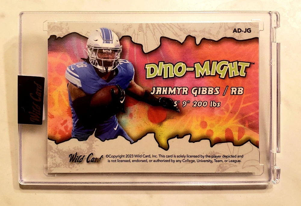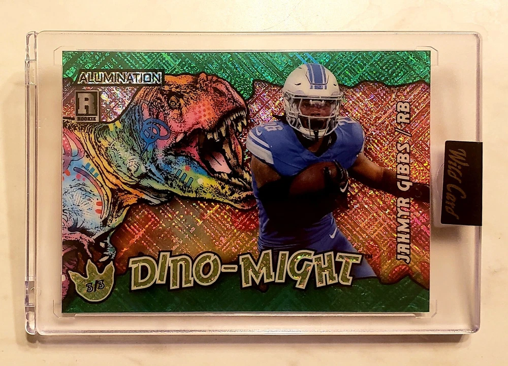 Jahmyr Gibbs 2023 Wild Card Dino-Might Green Cross Hatch 3/3 AD-JG Shipped in sealed case shown, and bubble padded mailer. Use photos to determine condition.