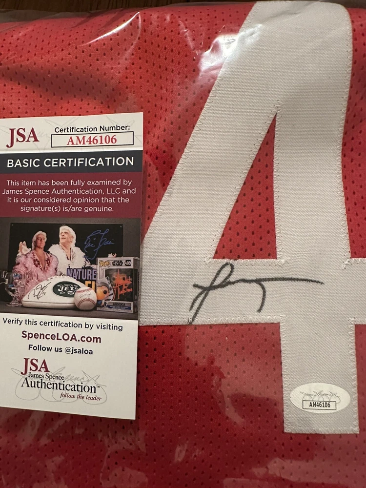 The product is an autographed Jalen Green jersey from the Houston Rockets in the NBA. The jersey is signed by Jalen Green and comes with a certification from James Spence Authentication (JSA). It is an original item and was made in the United States. The jersey features the number 4 and is a highly sought-after collectible item. Jersey comes AS IT IS LISTED IN THE PICTURES!! The jersey was only removed from the bag it came in to take pictures. It was not removed before or after the pictures were taken! The buyer pays for shipping. Any other questions let me know and check out my other auctions!