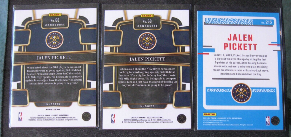 HomeJalen Pickett 3-Card Rookie Lot 2023-24 Select Blue Ice Blue Donruss Optic Denver Nuggets