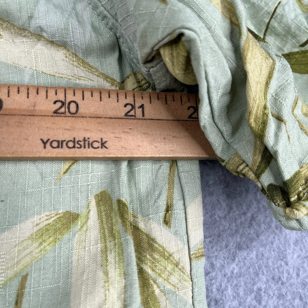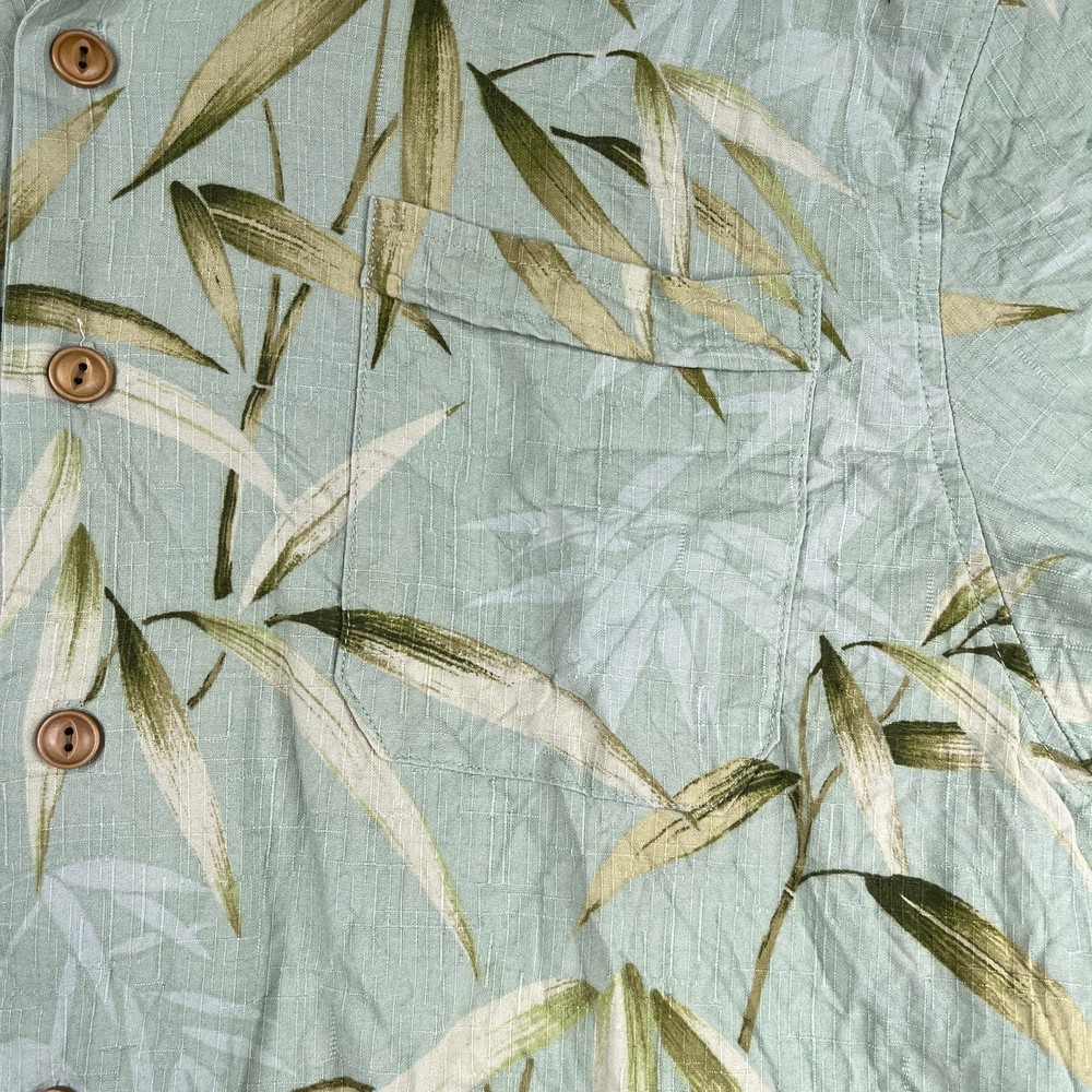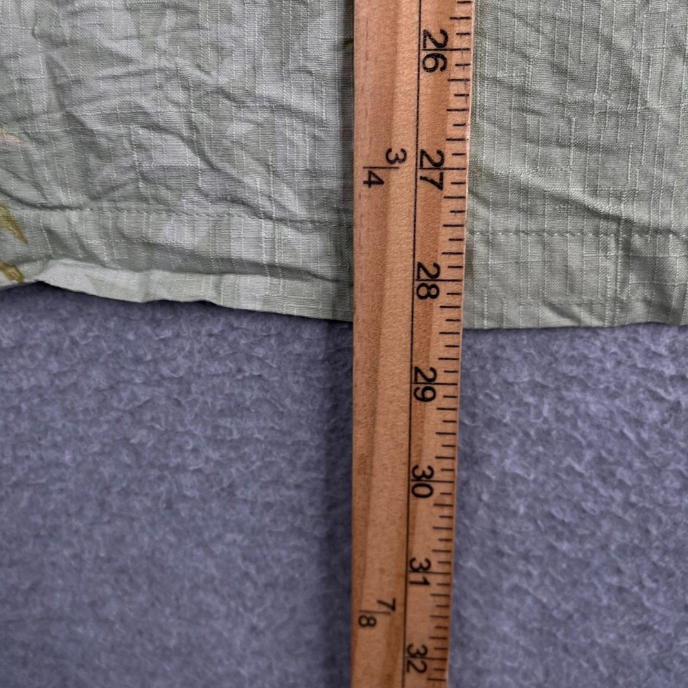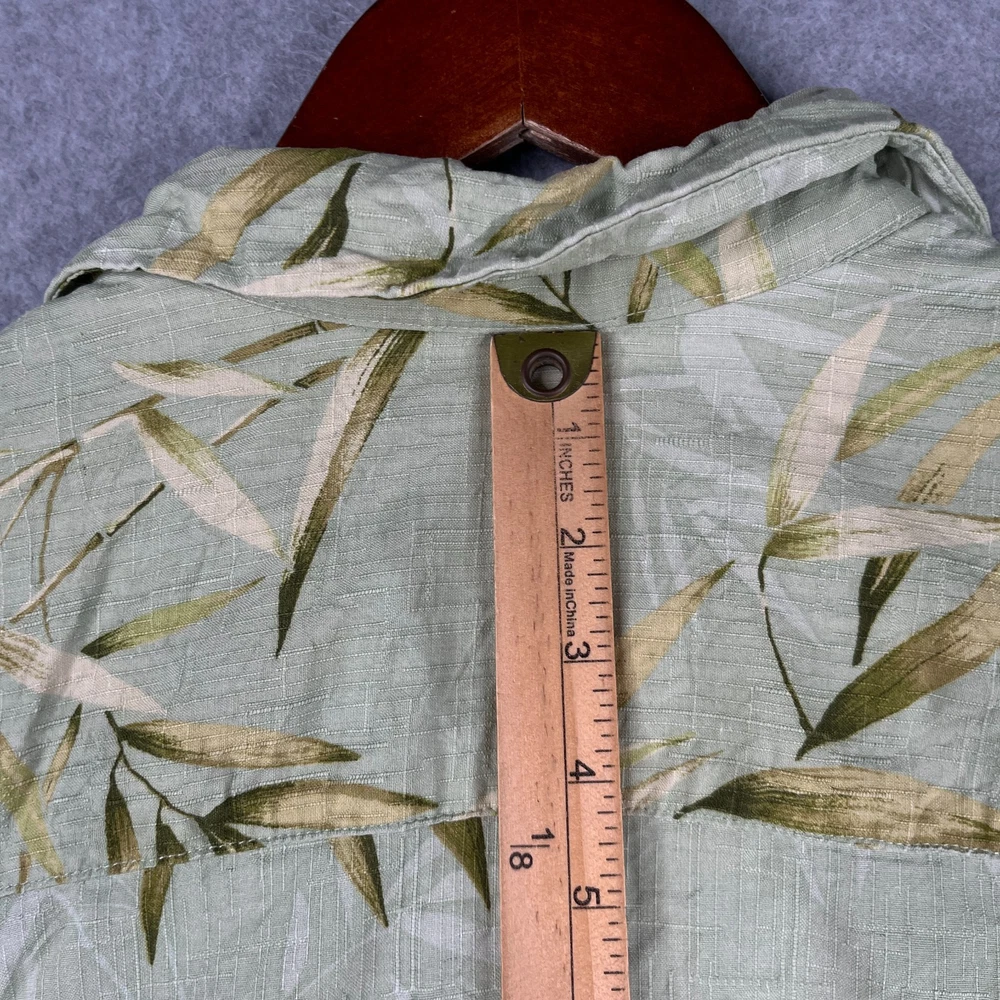 The Jamaica Jaxx Silk Hawaiian Print Shirt in size Large is a stylish and casual button-up shirt perfect for any occasion. Made from luxurious silk fabric, this short sleeve shirt features a beautiful floral Hawaiian print in a vibrant green color. The collared neckline and spread collar style add a touch of sophistication, while the accents of buttons and pockets complete the classic look. Machine washable and suitable for the summer, fall, and spring seasons, this shirt is a must-have for any man's wardrobe.