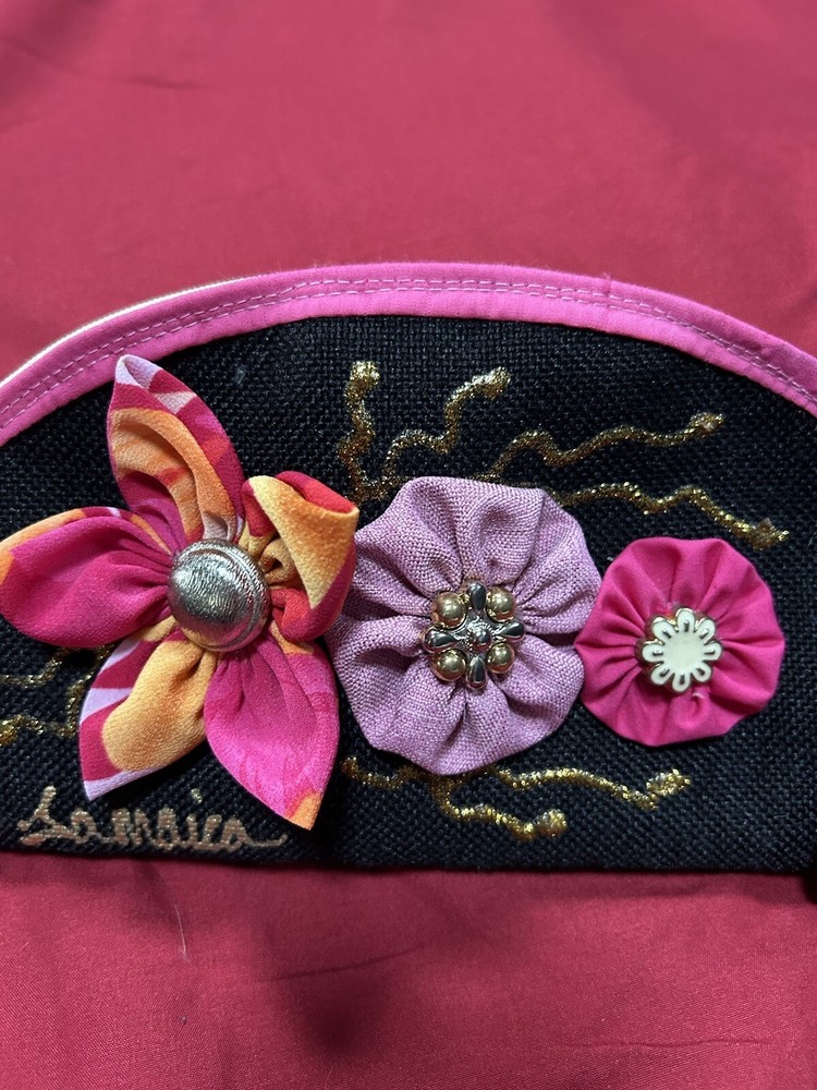 Raised Floral Zip Makeup Bag. Jamaica Theme Handcrafted