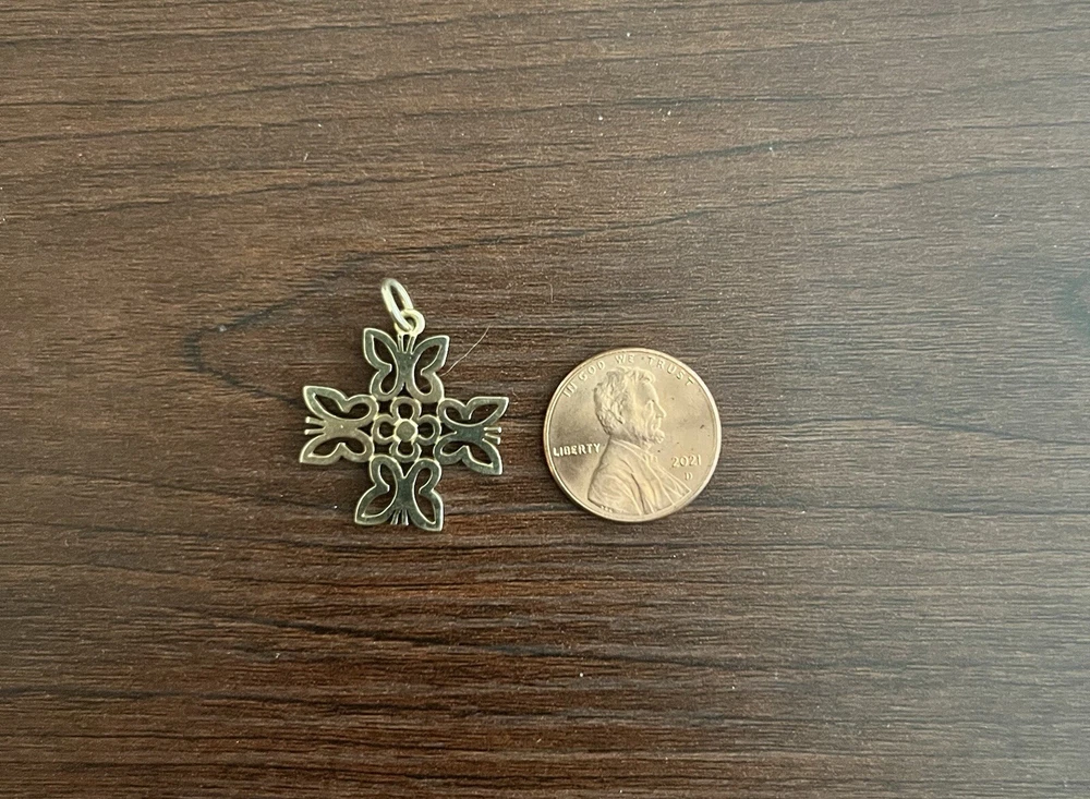 James Avery butterfly cross pendant 14k yellow gold Approximately 2.7 grams Approximately 20mm wide (Item is preowned, wear and tear may be present such as blemishes, scratching, or imperfections. Item may need buffing and/ or polishing. All sales final)