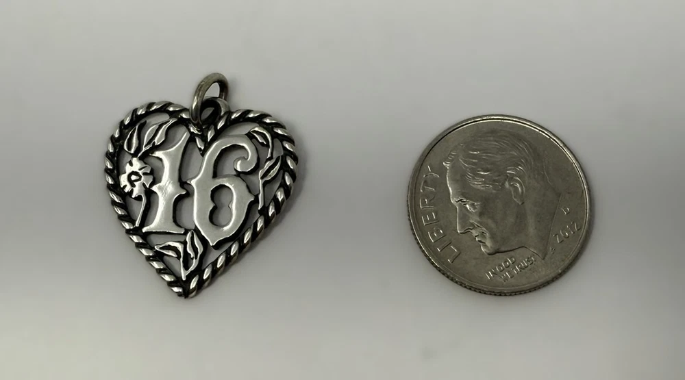 James Avery Signed & Marked Sterling Sweet Sixteen Heart Charm Beautiful Detail: Flowers, Leaves & Vines Retired 3/4" x 3/4" 1.79 g