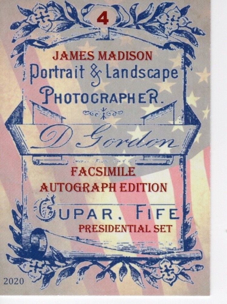 JAMES MADISON Presidential ACEO Portrait D. Gordon Facsimile Autograph PHOTOS SHOW FRONT AND BACK OF THE CARD YOU WILL RECEIVE 1 CARD APS #96033 STOCK PHOTOS UNLESS OTHERWISE MENTIONED BLACK DISPLAY HOLDERS ARE NOT INCLUDED TO RECEIVE FREE SHIPPING YOUR PURCHASES MUST BE ON ONE INVOICE TO SAVE ON SHIPPING, COMBINE YOU PURCHASES ON ONE INVOICE. IF YOU MAKE MULTIPLE PURCHASES AND DO NOT COMBINE THEM ON ONE INVOICE THEY WILL SHIP SEPARATELY.