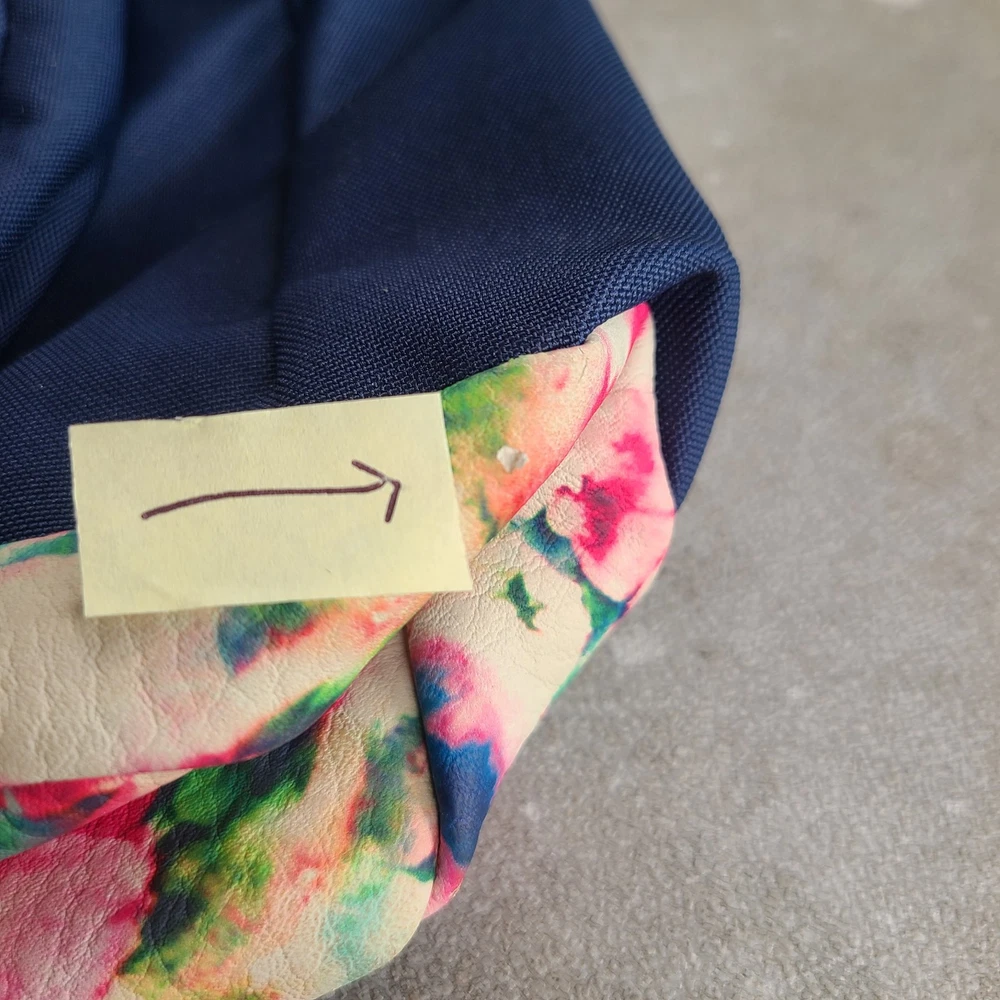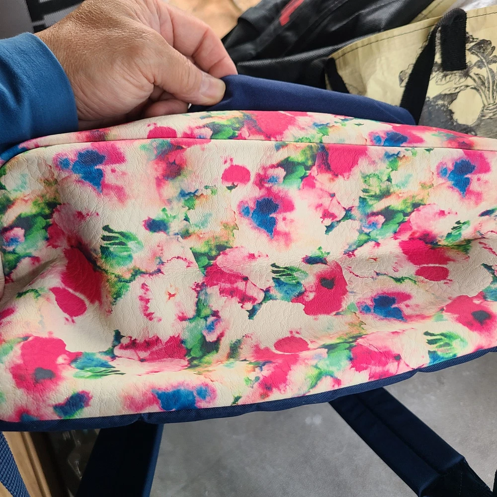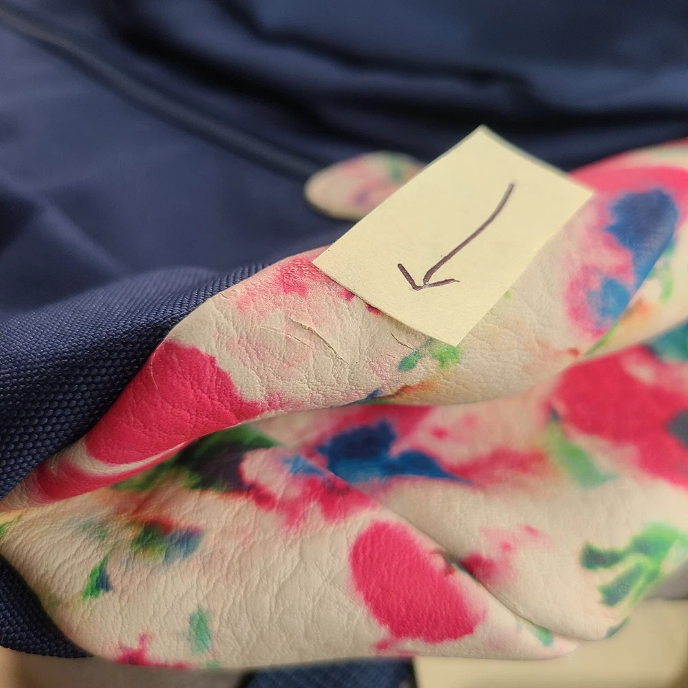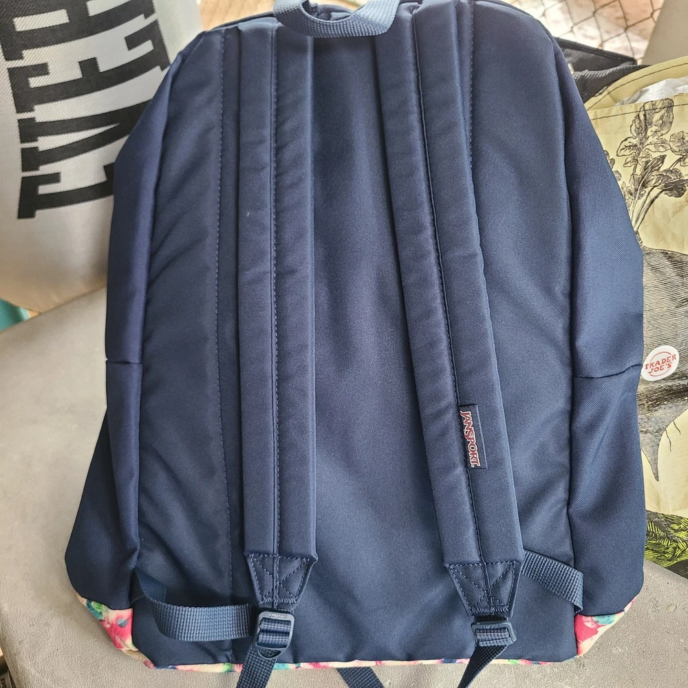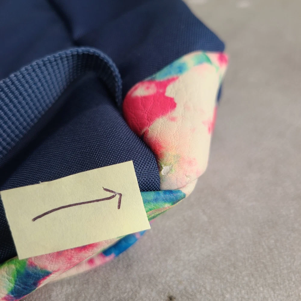 JanSport AUSTIN Backpack Stella Blue Faux Leather Floral Bottom GREAT CONDITION