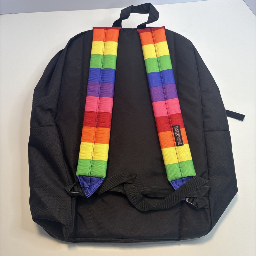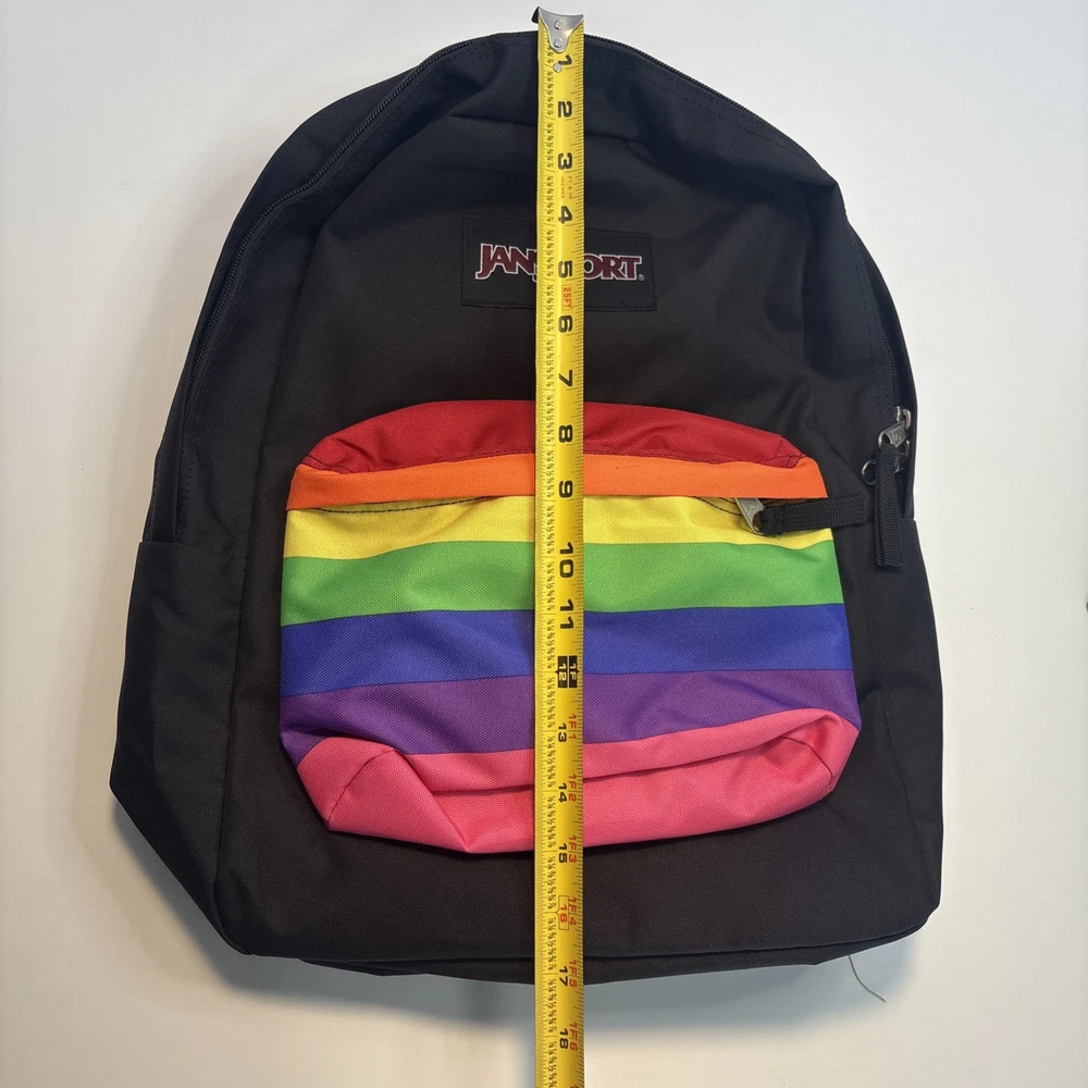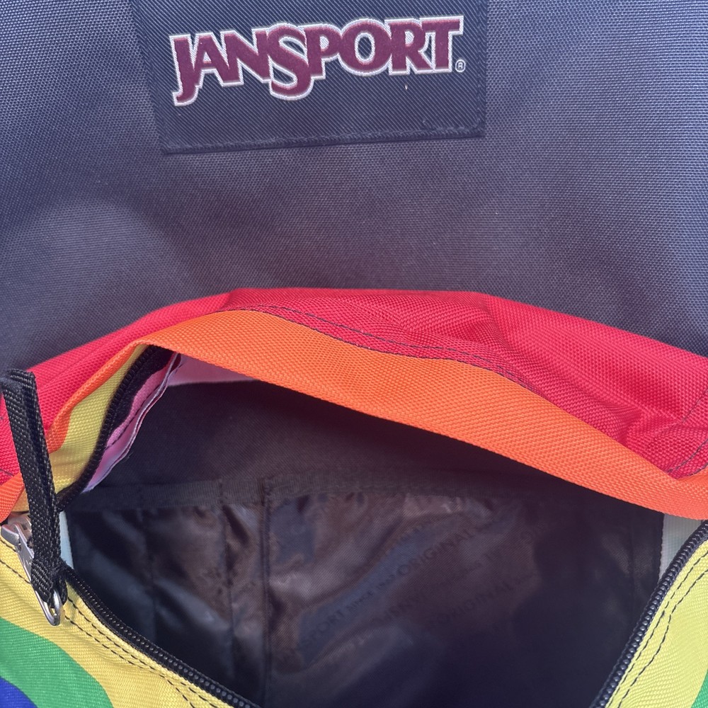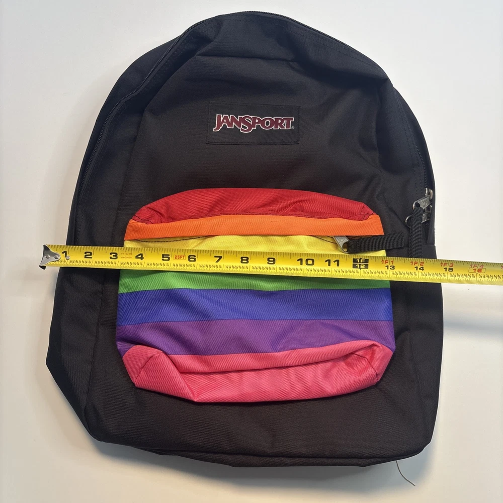 Size: Medium UPC: Does not apply Color: Multi-Color Theme: Colorful, Rainbow Character: Dream gtin13: Does not apply Pattern: Striped Department: Unisex Kids Style: Backpack Character Family: Rainbow Bag Depth: 8.5 MPN: Does Not Apply Bag Width: 13 Material: Polyester Handle/Strap Material: 100% Polyester Vintage: No Features: Adjustable Strap, Lightweight, Outer Pockets, Padded Brand: JanSport Bag Height: 16.7 Closure: Zip