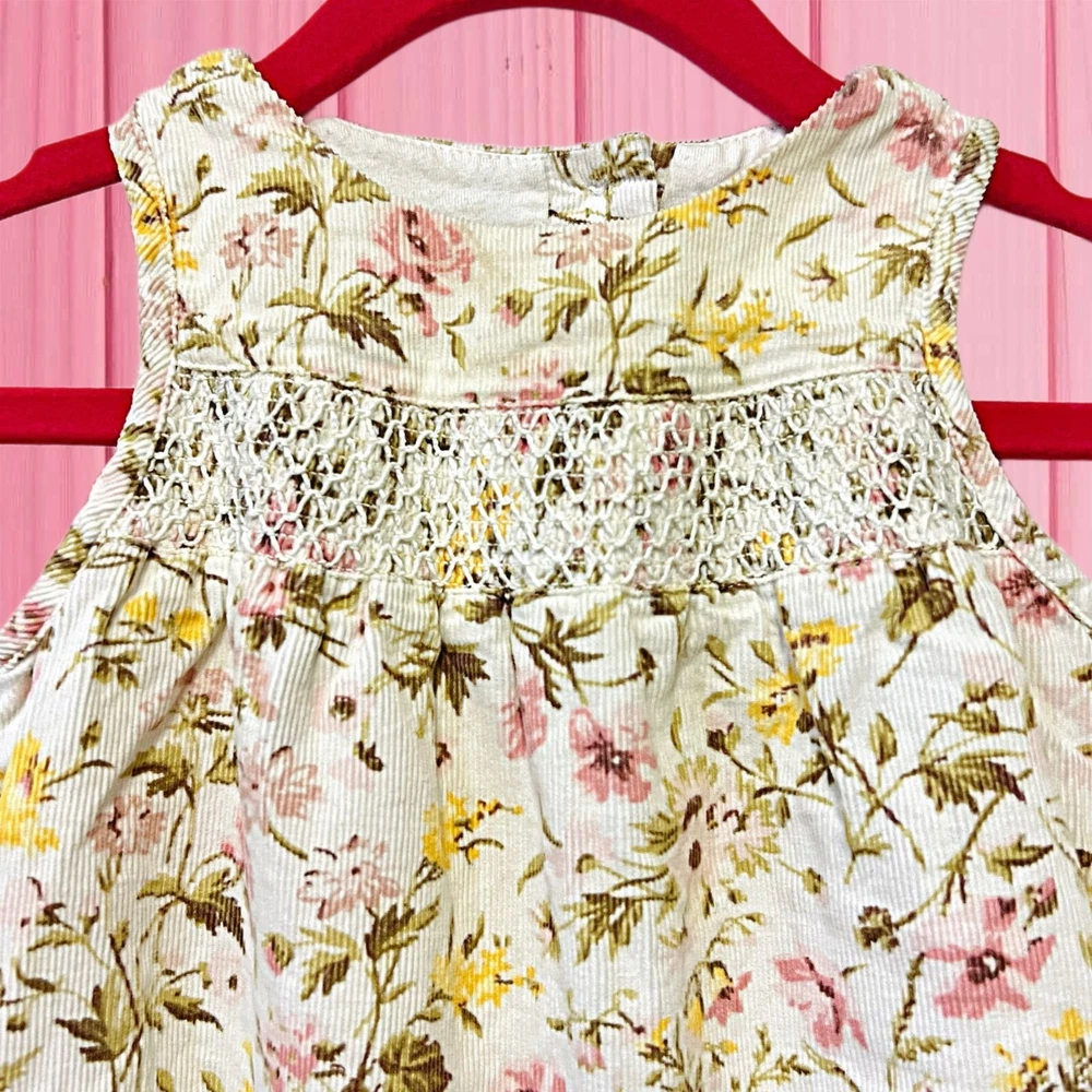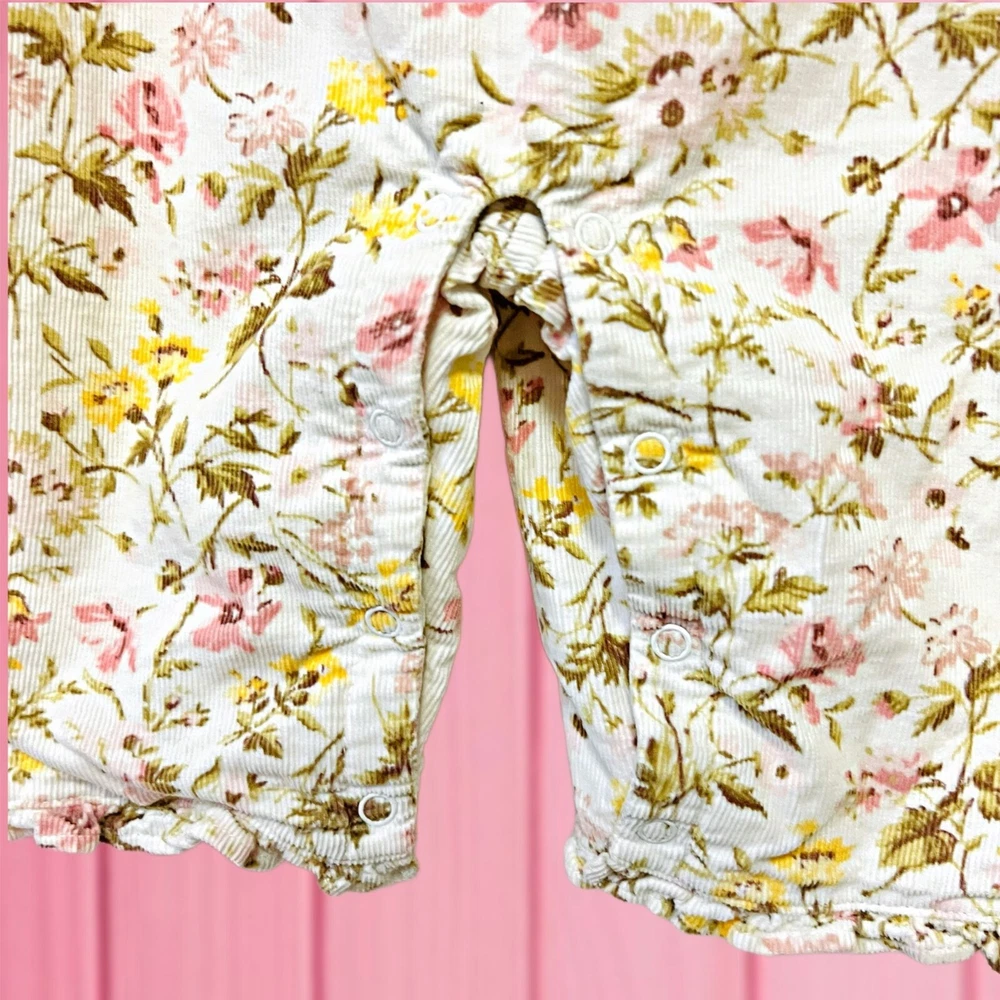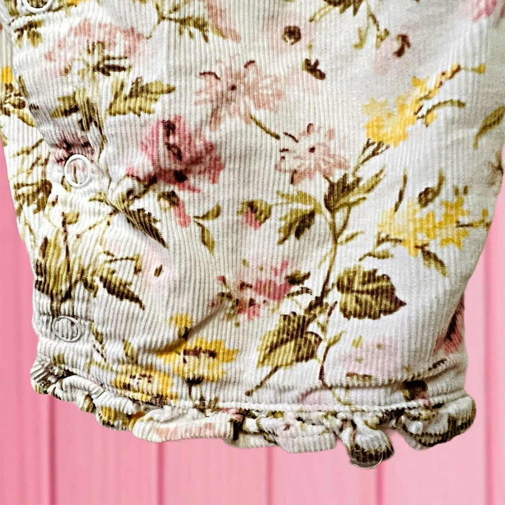 ✨Welcome Spring with this corduroy one-piece for baby girl jumpsuit. Featuring an allover floral print, sleeveless, flutter detail & beautiful detail on front for a cute style, the back button closures and crotch snaps allow for easy dressing & diaper changing. This romper for baby girl will soon become Mama's (and her's) favorite! ✨Size 3-6 Months ✨Shell: 100% Cotton ✨Lining: 100% Cotton ✨Pre-Loved ✨I describe the items as currently as possible, have in mind I’m human & I can miss a flaw ✨Pets & Smoke Free ✨All sales are finals, Please ask any questions before purchase, I will be more than happy to help you ✨The color of the pictures can varies depends of the lighting